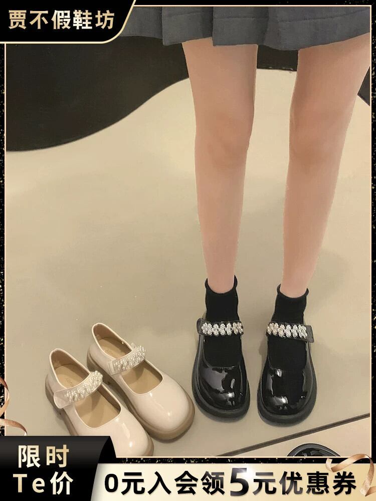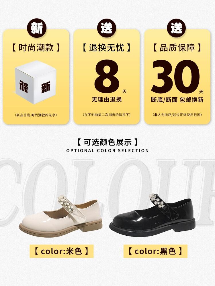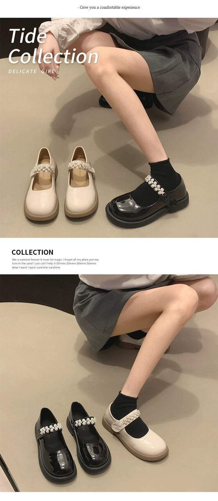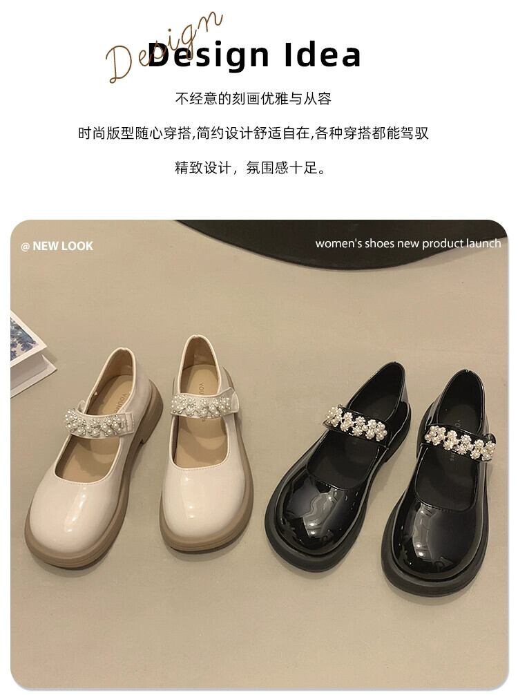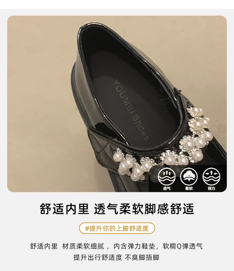 ese シングルシューズの女性の 2023 夏の新ファッションオールマッチレトロパールベルクロローヒール eign スタイルの革靴 サマー 夏物 レザー 真珠 jxjxf74423291572