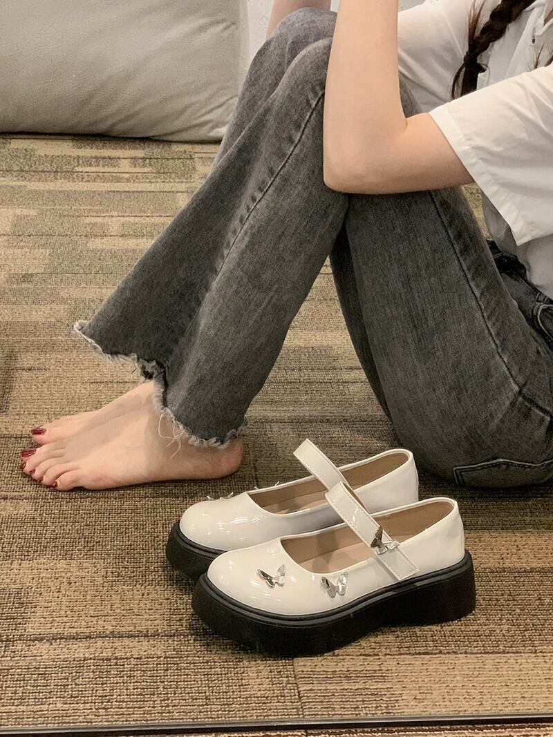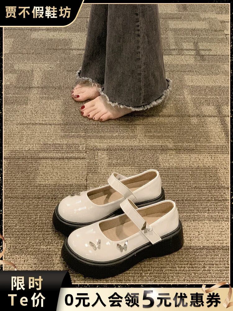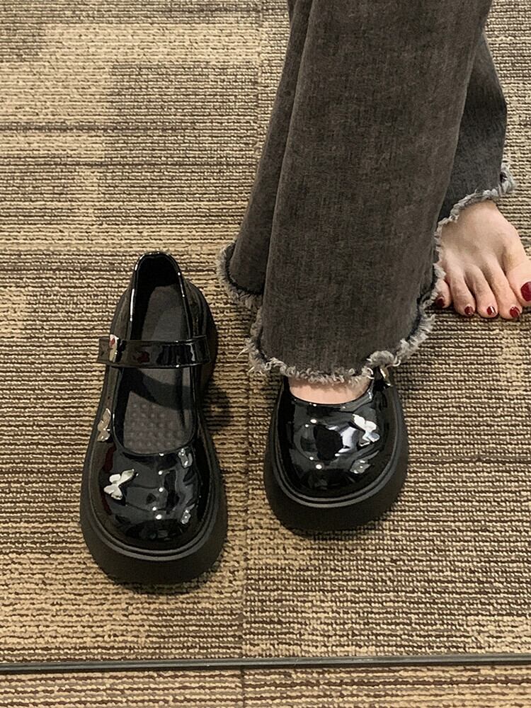 ネットセレブシングルシューズレディース 2023 夏の新レトロメタルリボン厚底メリージェーン革靴 サマー 夏物 レザー jxjxf94195406681