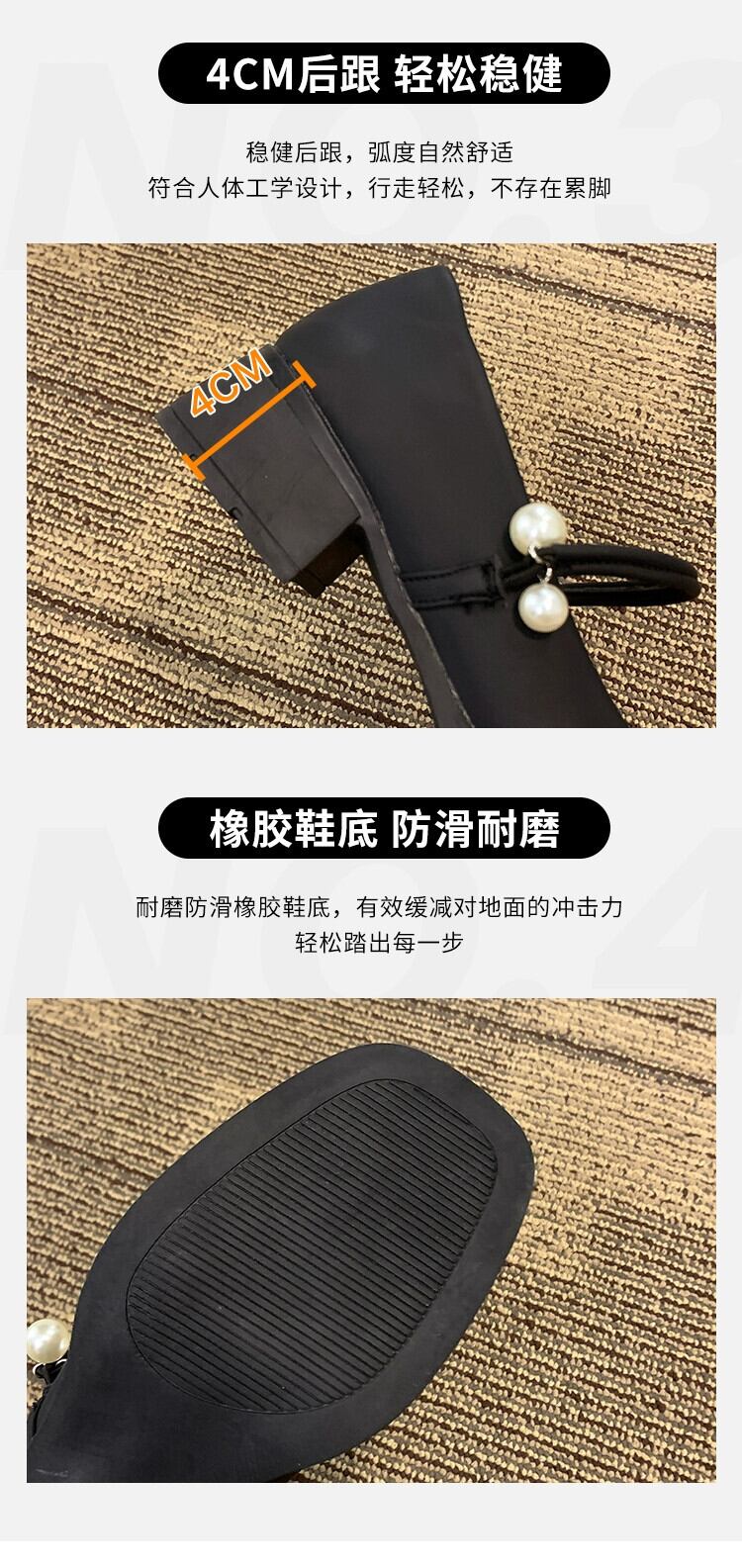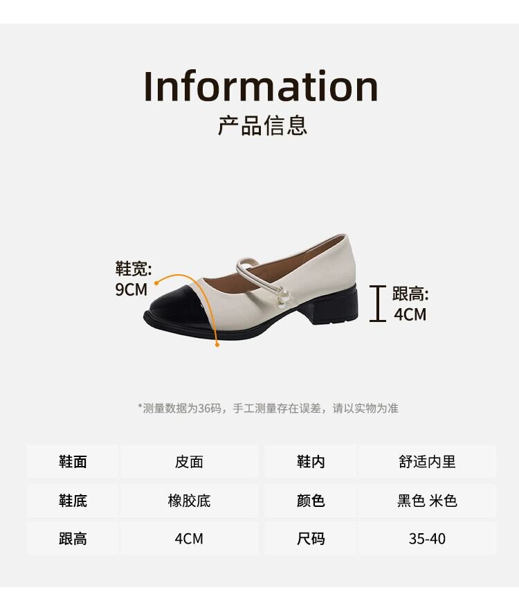 シングルシューズ女性の 2023 夏の新フランスの気質レトロパール浅い口厚いヒールメリージェーン小さな革靴 サマー 夏物 レザー 真珠 jxjxf26548433650