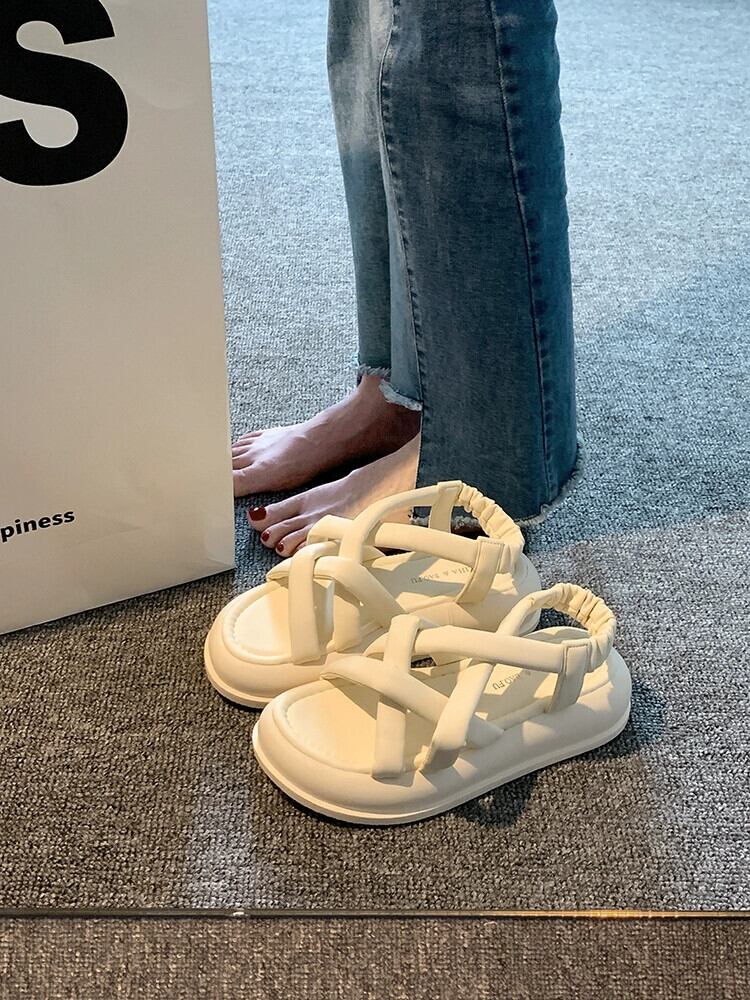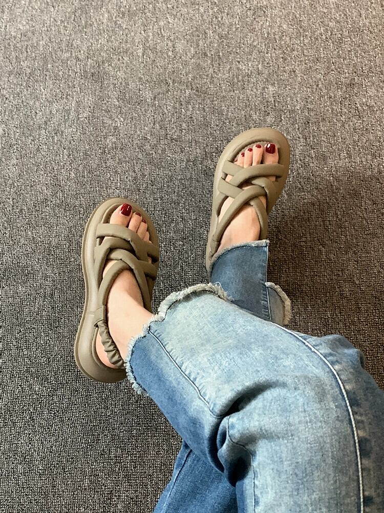厚底ローマンシューズの女性の 2023 夏の新ファッションフランス中空通気性織カジュアルビーチサンダルトレンド 靴 サマー 夏物 jxjxf77356675491