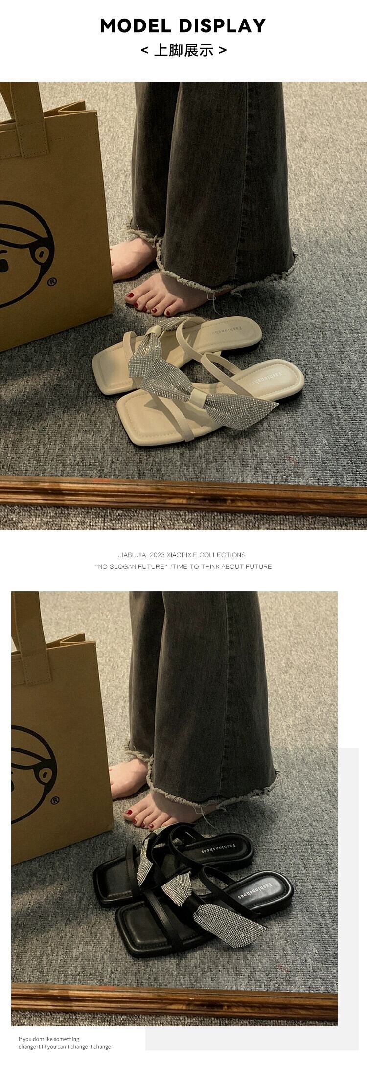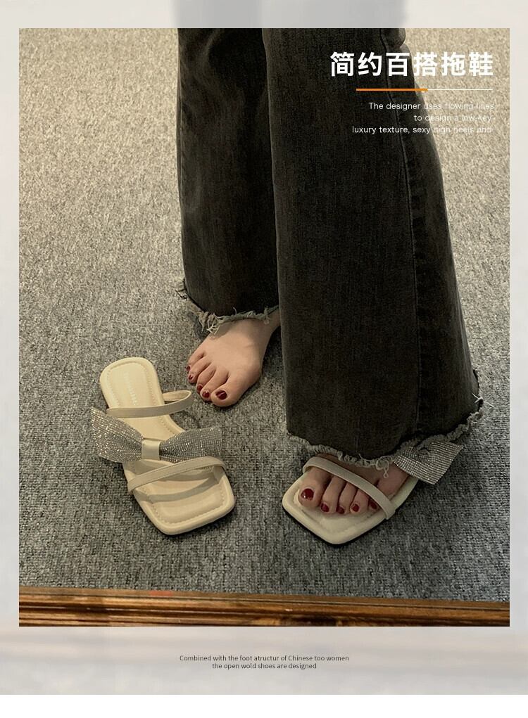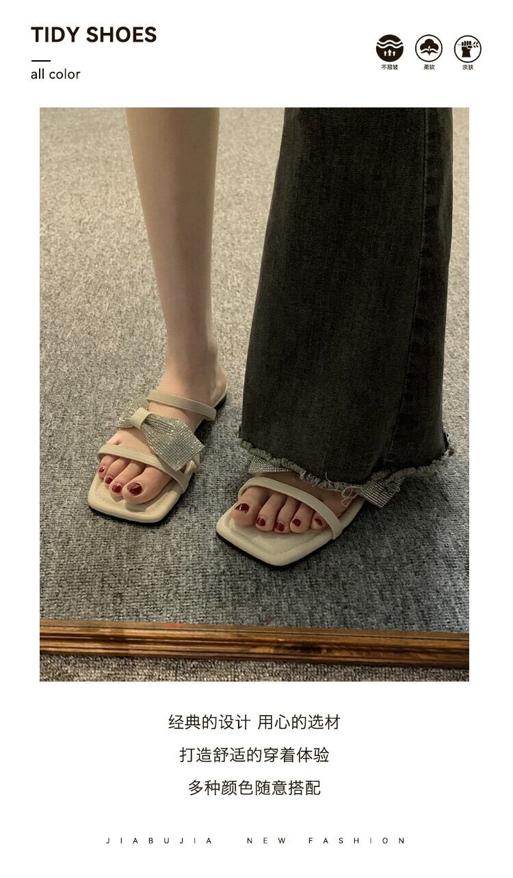 インターネットセレブスリッパレディースアウター 2023 夏の新ファッションオールマッチ eign スタイルラインストーンちょう結びフラットビーチサンダル リボン ミュール 靴 シューズ サマー 夏物 jxjxf2050058160