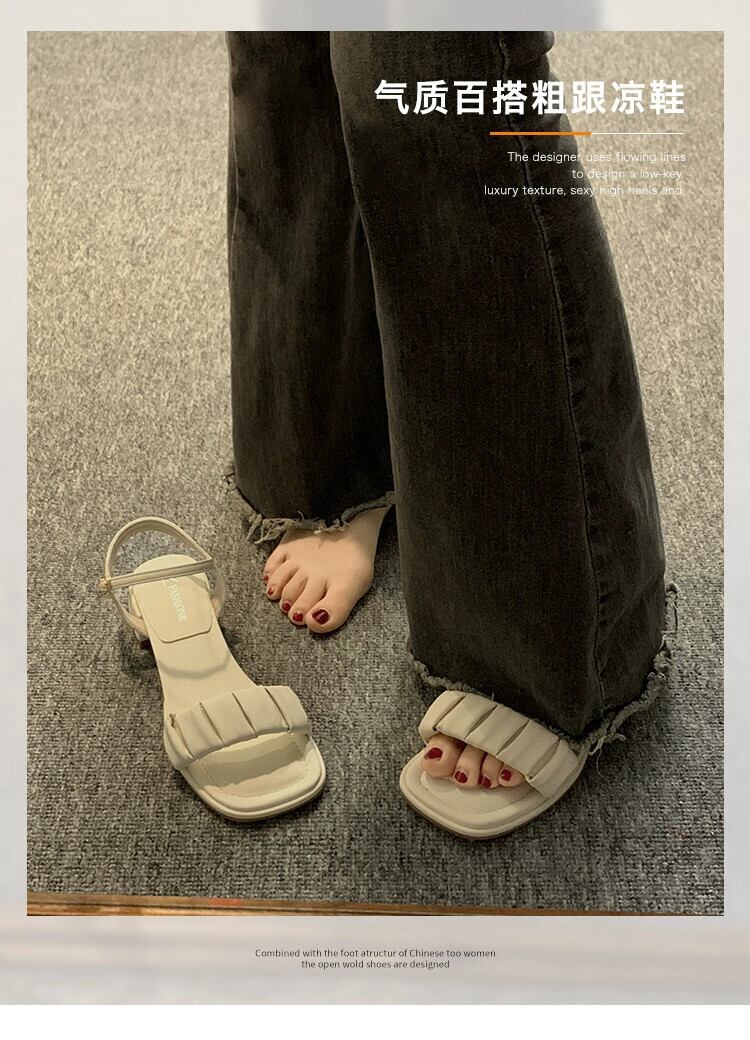 女性のサンダル 2023 夏の新しいファッションオールマッチ優しいレトロなスタイルの太いヒールとハイヒールの潮 靴 シューズ サマー 夏物 jxjxf8429526971