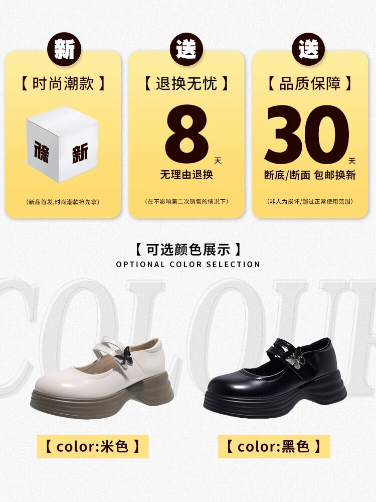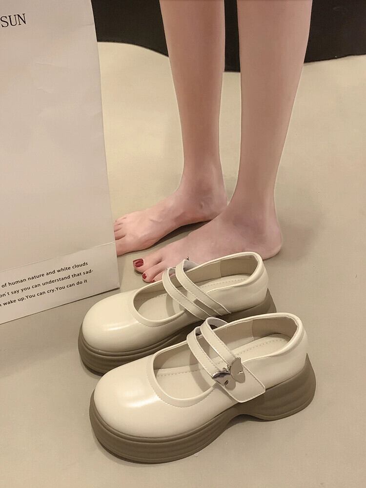 シングルシューズの女性の 2023 夏の新ファッションオールマッチフレンチレトロ浅口厚底メリージェーンレザーシューズ 靴 サマー 夏物 jxjxf23668568526