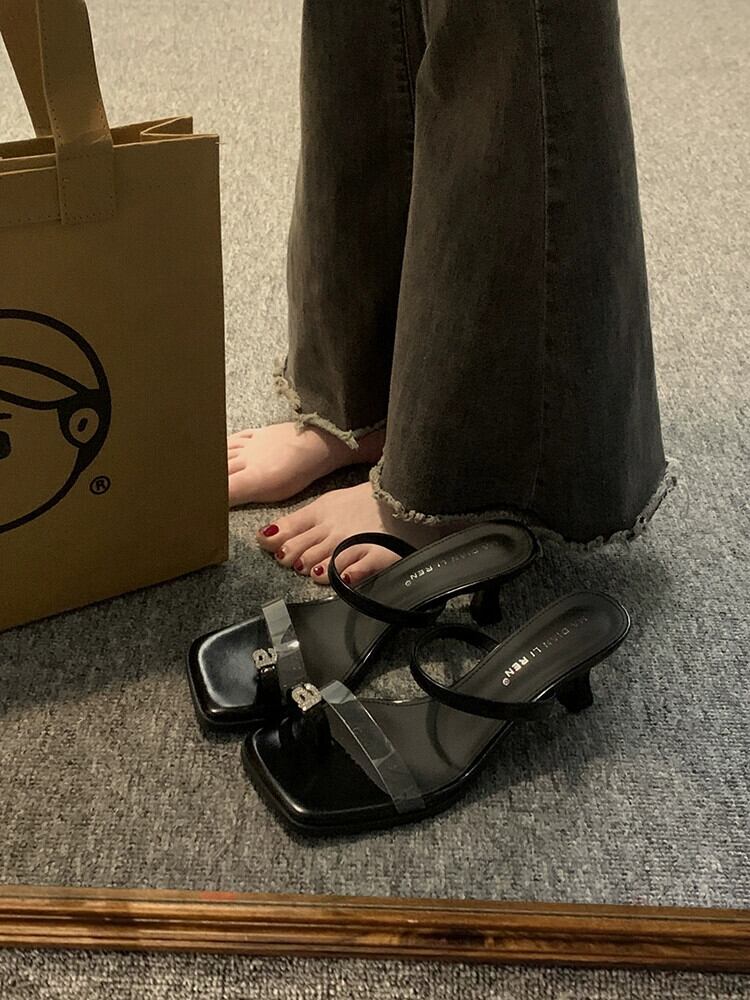 スリッパ女性の夏服 2023 新しいファッションオールマッチ eign スタイルのラインストーンハイヒール滑り止めスリッポンサンダルとスリッパ 靴 シューズ ミュール サマー 夏物 jxjxf32491523954