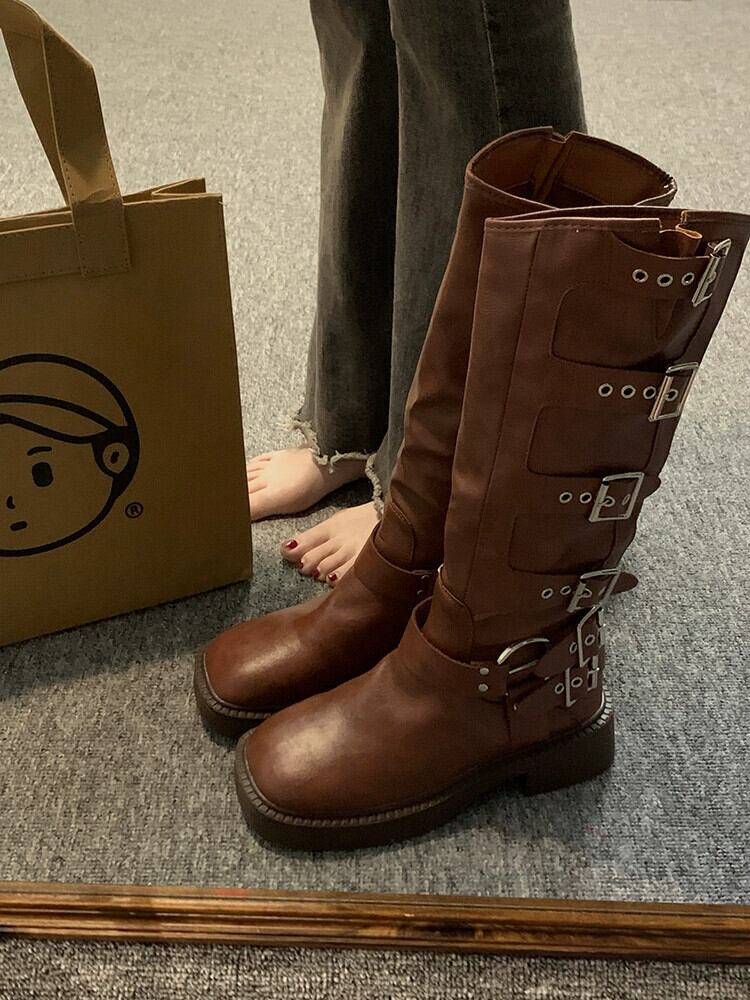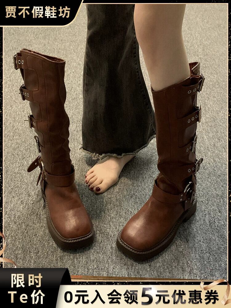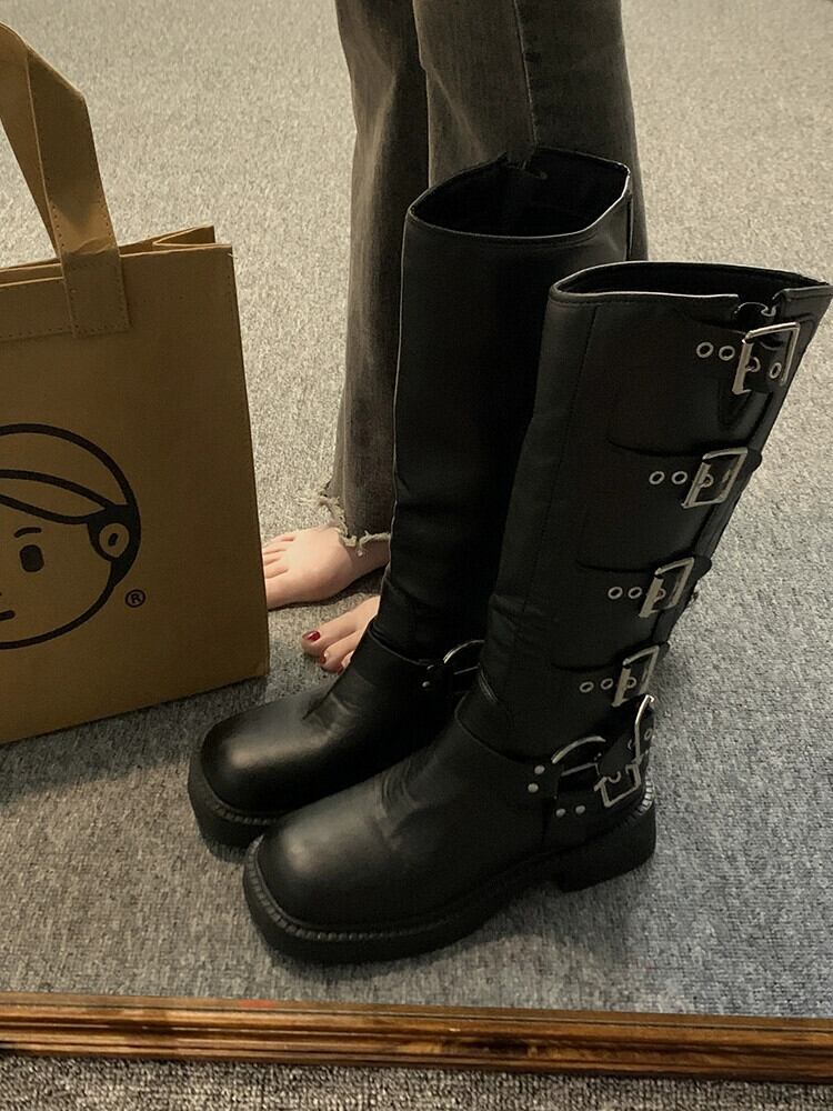 英国スタイルのブーツの女性の 2023 夏の新しいスーパーファッションオールマッチレトロハンサムな厚底オートバイライダーブーツ 靴 シューズ サマー 夏物 jxjxf39773400733