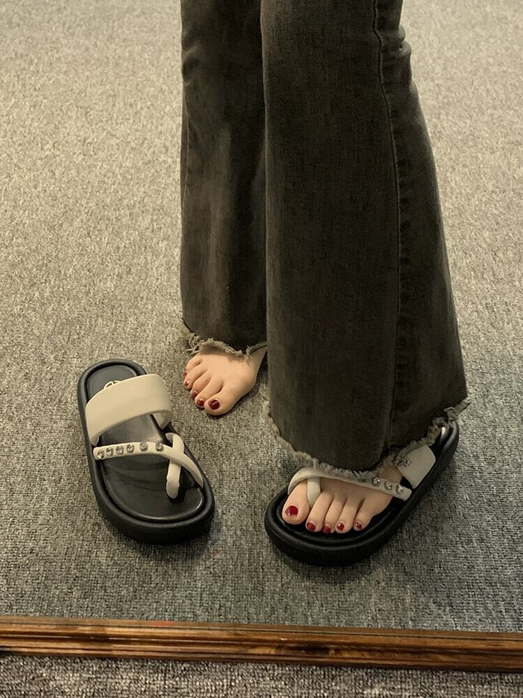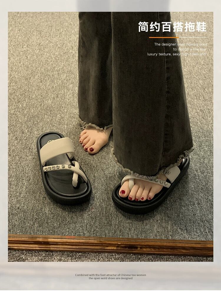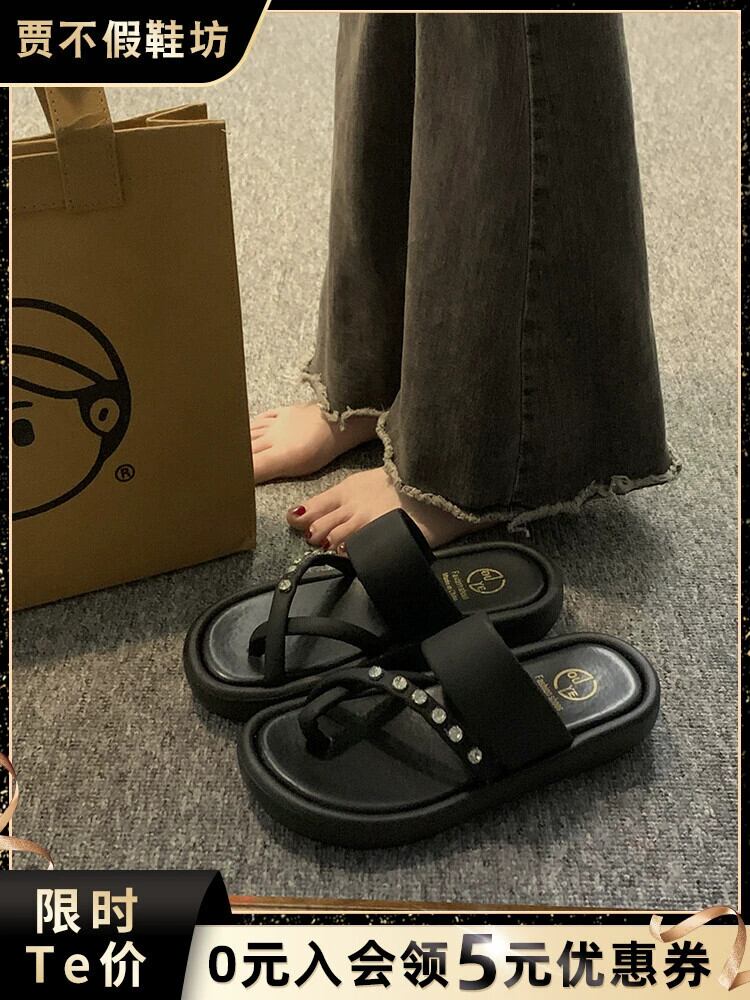 アウタースリッパレディース 2023 夏の新ファッションネットレッドレトロ eign スタイルのラインストーン厚底サンダルとスリッパ ミュール 靴 シューズ サマー 夏物 jxjxf83859258742