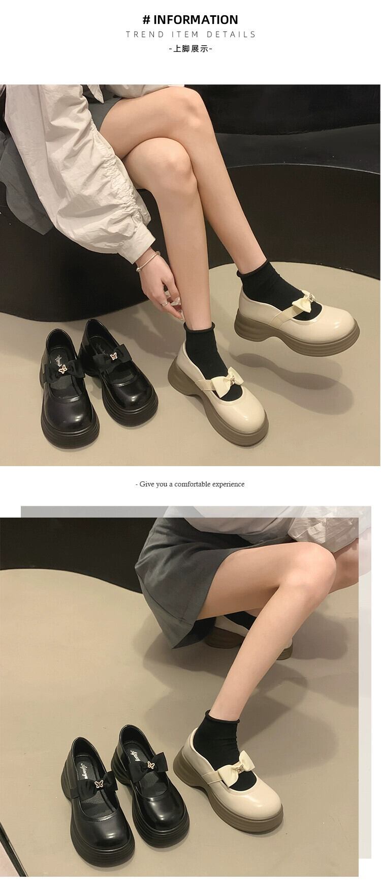 ese シングルシューズの女性の 2023 夏の新ファッションオールマッチレトロ弓 comtable 厚底 eign スタイルの小さな革靴 リボン サマー 夏物 レザー jxjxf68333501834