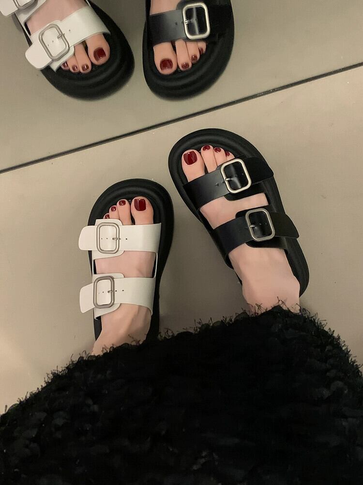 女性のスリッパ夏服 2023 新しいファッションベルトバックル小さな厚い底 comtable カジュアルビーチサンダルトレンディな ミュール 靴 シューズ サマー 夏物 ハーネス jxjxf61580521132