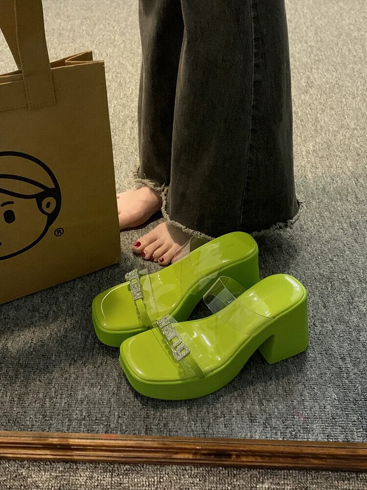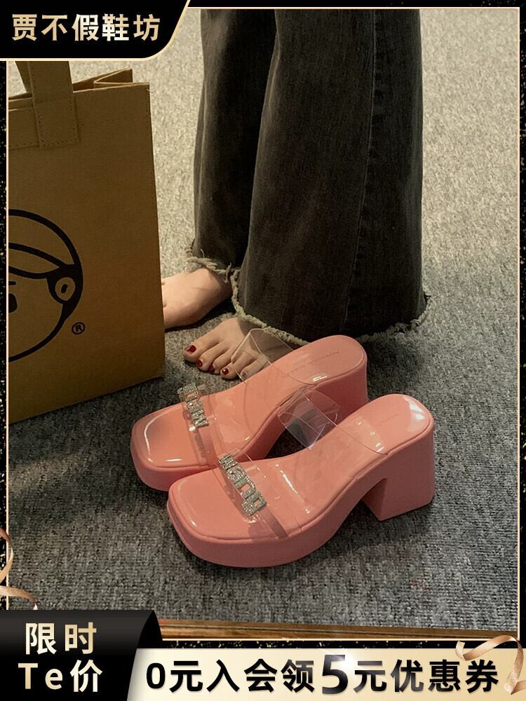 2023年の夏のサンダルとスリッパの女性の新しいフランスのeignスタイルのラインストーンは、ハイヒールで小さな透明な文字の高さを高めます 靴 シューズ ミュール サマー 夏物 jxjxf36639658794