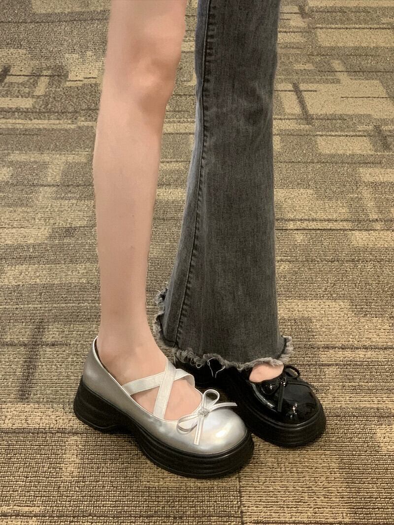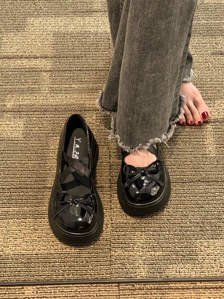 スタイルシングルシューズ女性の 2023 夏の新フレンチスタイル蝶ネクタイレトロチャンキーヒールメリージェーン革靴 リボン サマー 夏物 レザー jxjxf91618819405