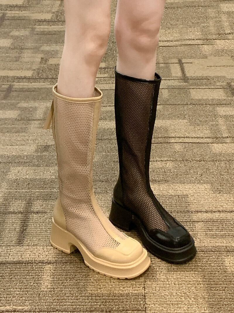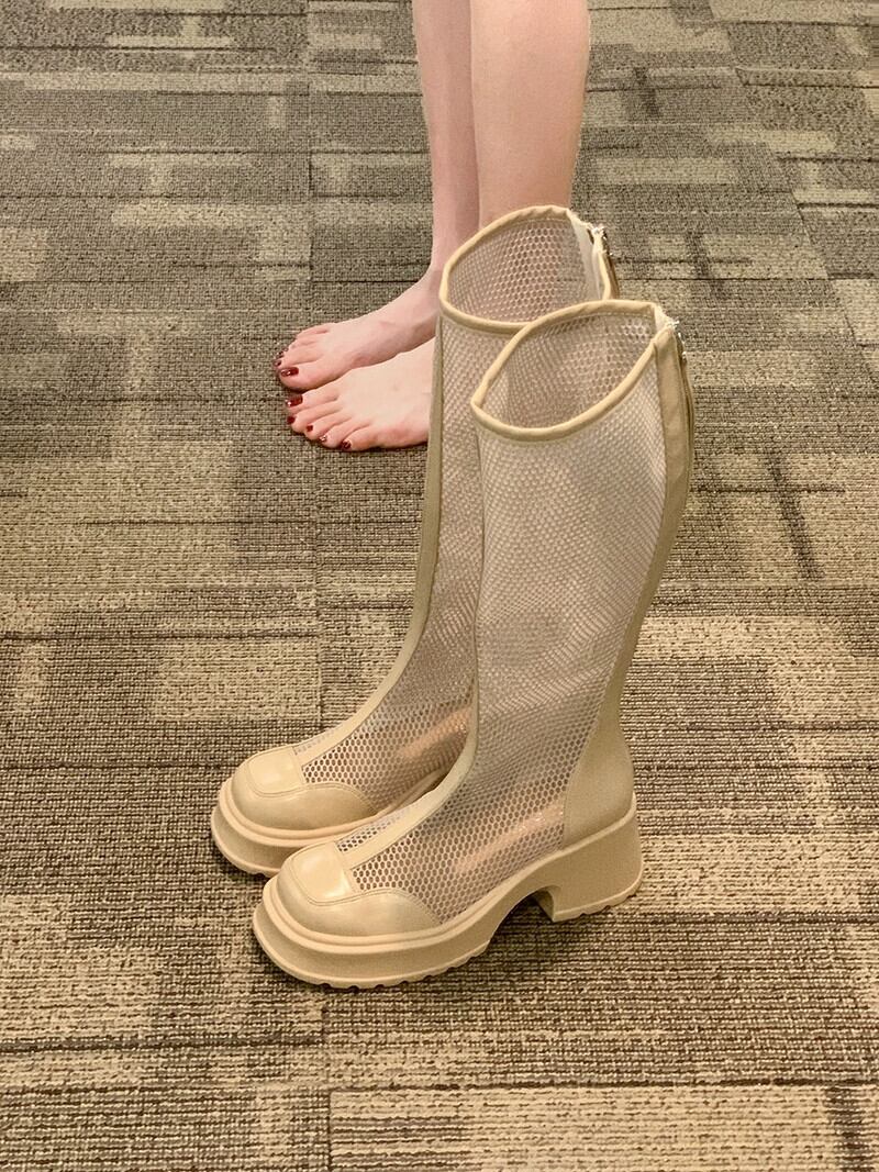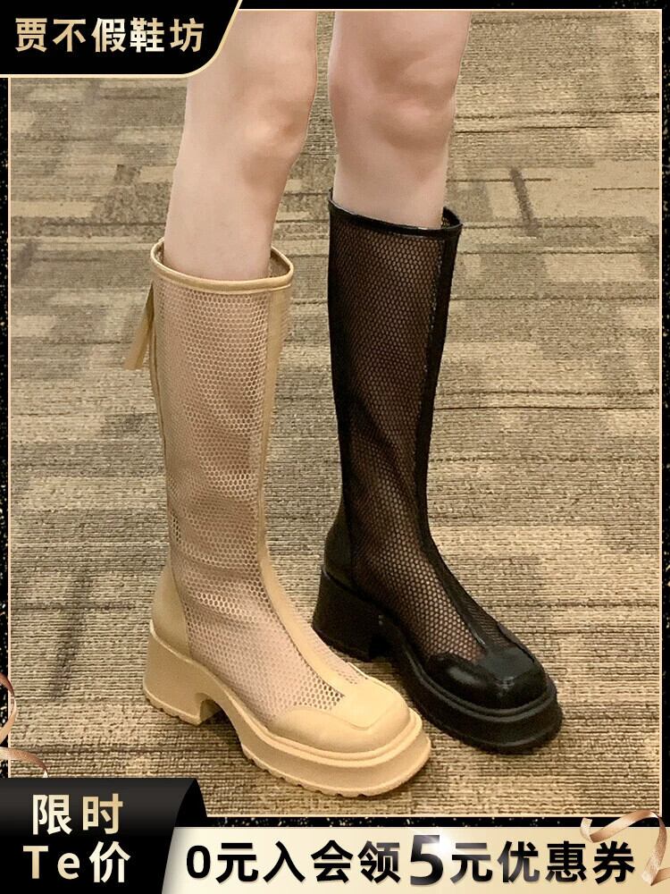 しかし、ニーブーツの女性の 2023 夏の新しいファッションオールマッチ小型通気性の薄いレトロ厚いかかとのサンダル 靴 シューズ サマー 夏物 jxjxf86341290448