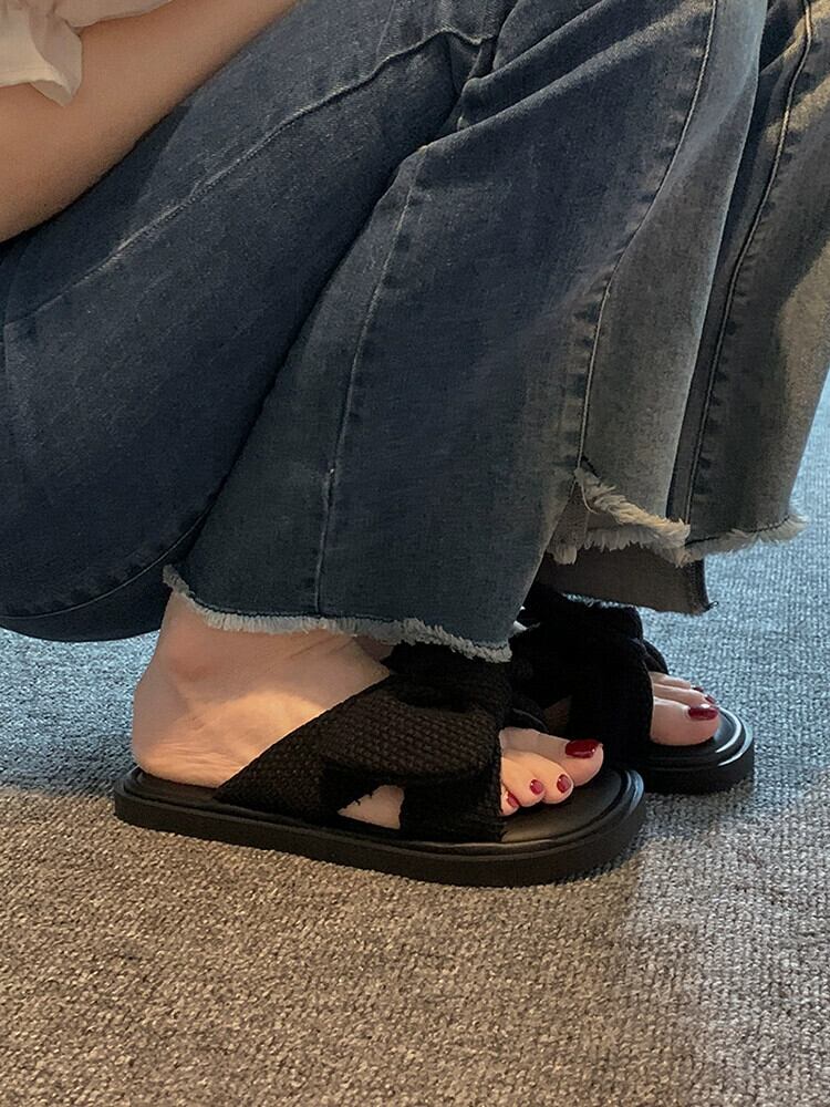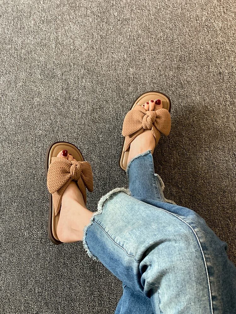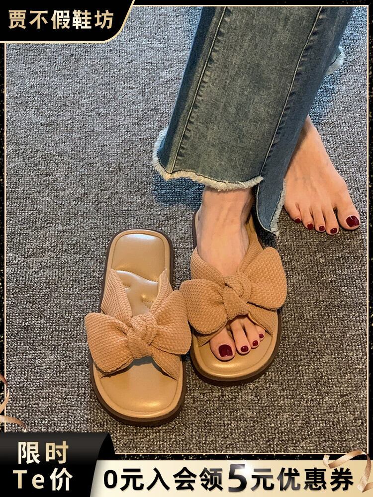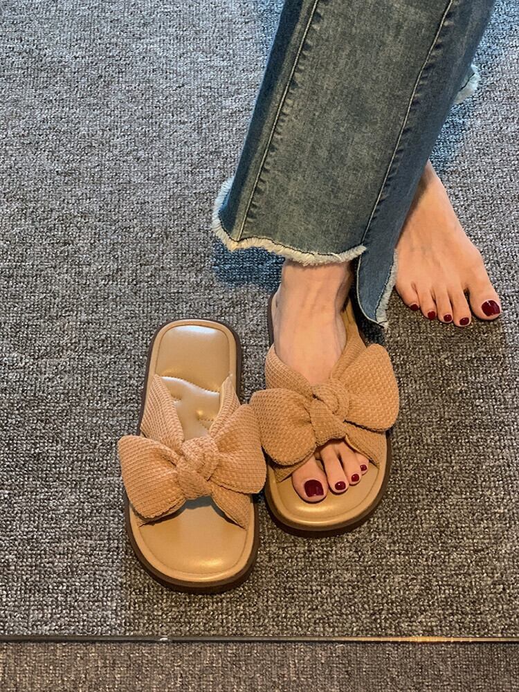 一言スリッパレディースアウター、2023年夏の新しいファッションスタイルの蝶結びの快適なソフトソールサンダルとスリッパのトレンド リボン ミュール 靴 シューズ サマー 夏物 jxjxf19429131694