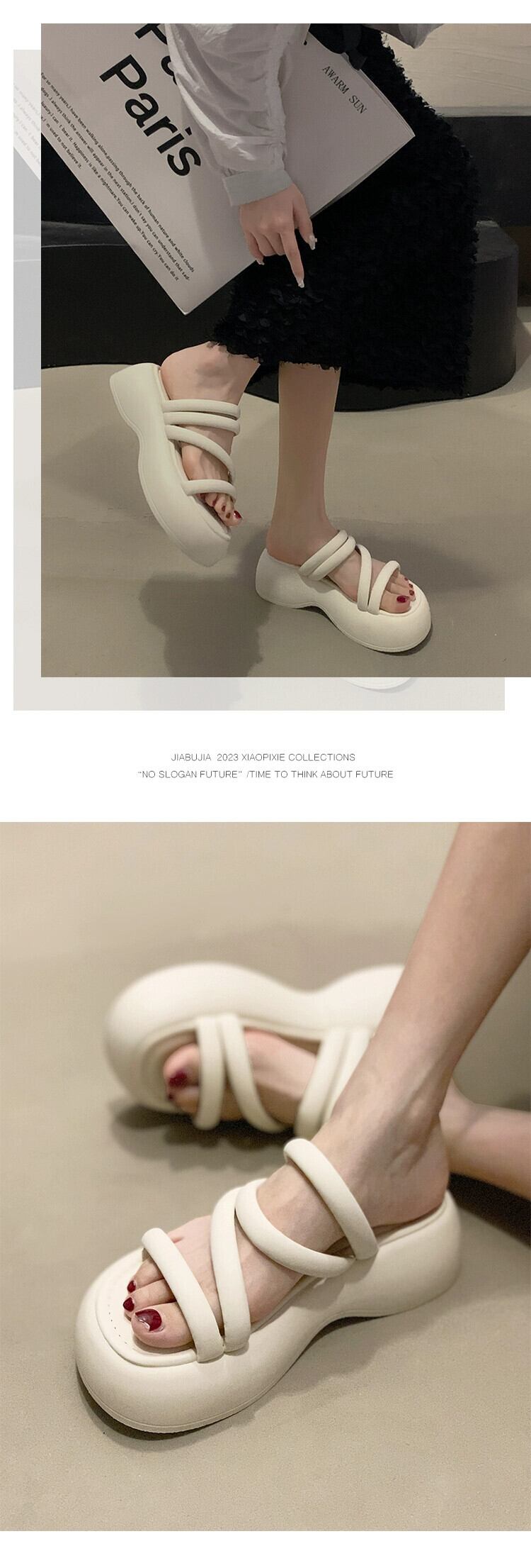 2023年夏新作の一言スリッパレディースシンプルでレトロなフランスアインスタイルの童謡カジュアルサンダルを履いています。 ミュール 靴 シューズ サマー 夏物 jxjxf20004086735