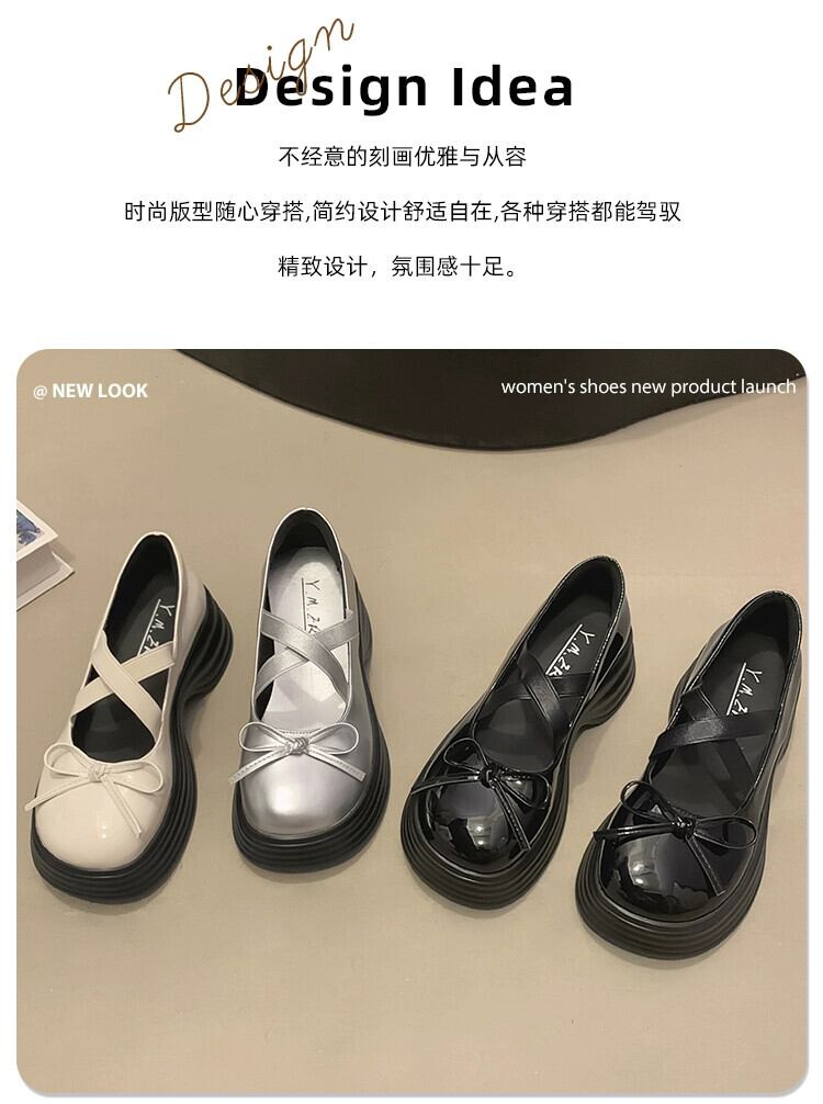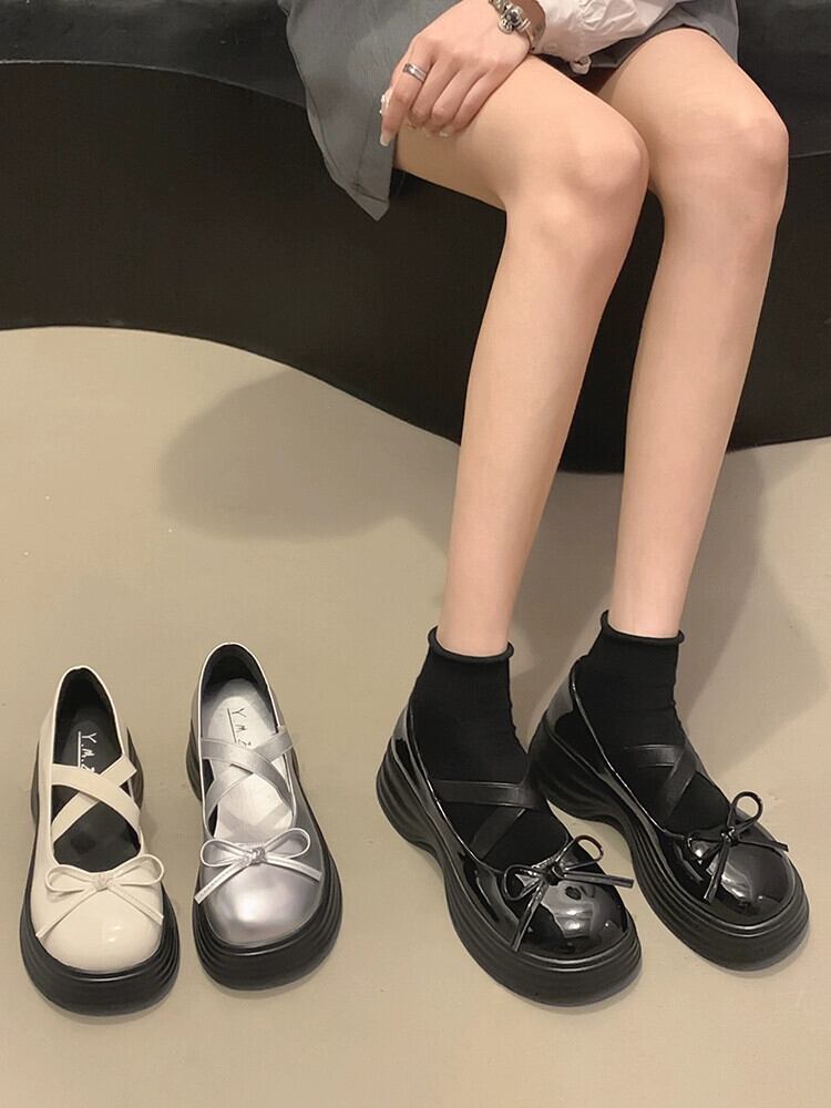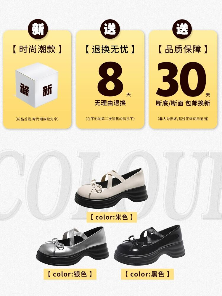 Jiabu 偽スタイルシングルシューズ女性の 2023 夏の新フレンチボウエインスタイルチャンキーヒールメリージェーン革靴 リボン サマー 夏物 レザー jxjxf11324634908