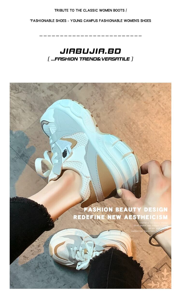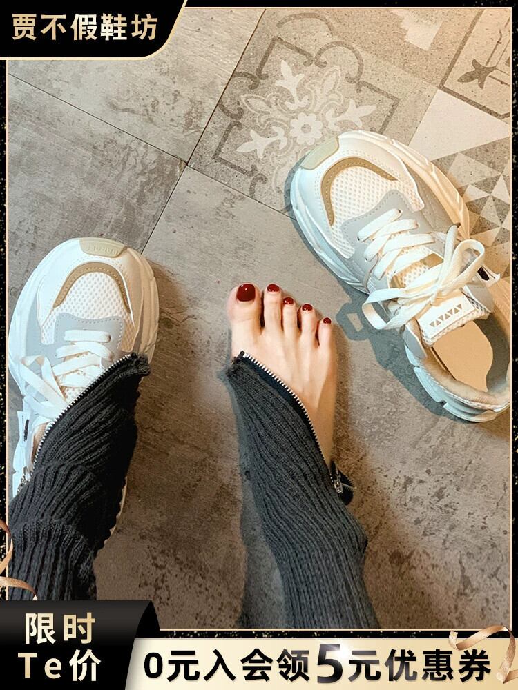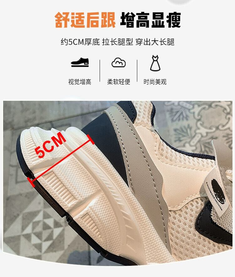 Jiabu 偽厚底スポーツシューズ女性の 2023 夏の新しいメッシュ表面通気性と快適性増加カジュアル古い靴潮 サマー 夏物 jxjxf79656435821