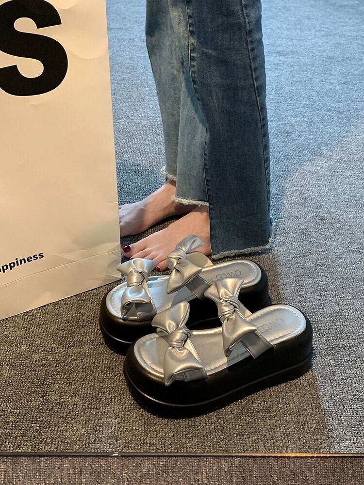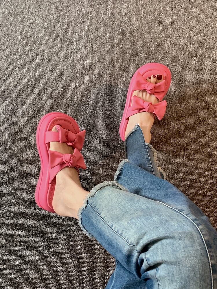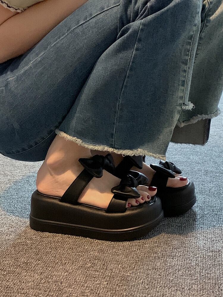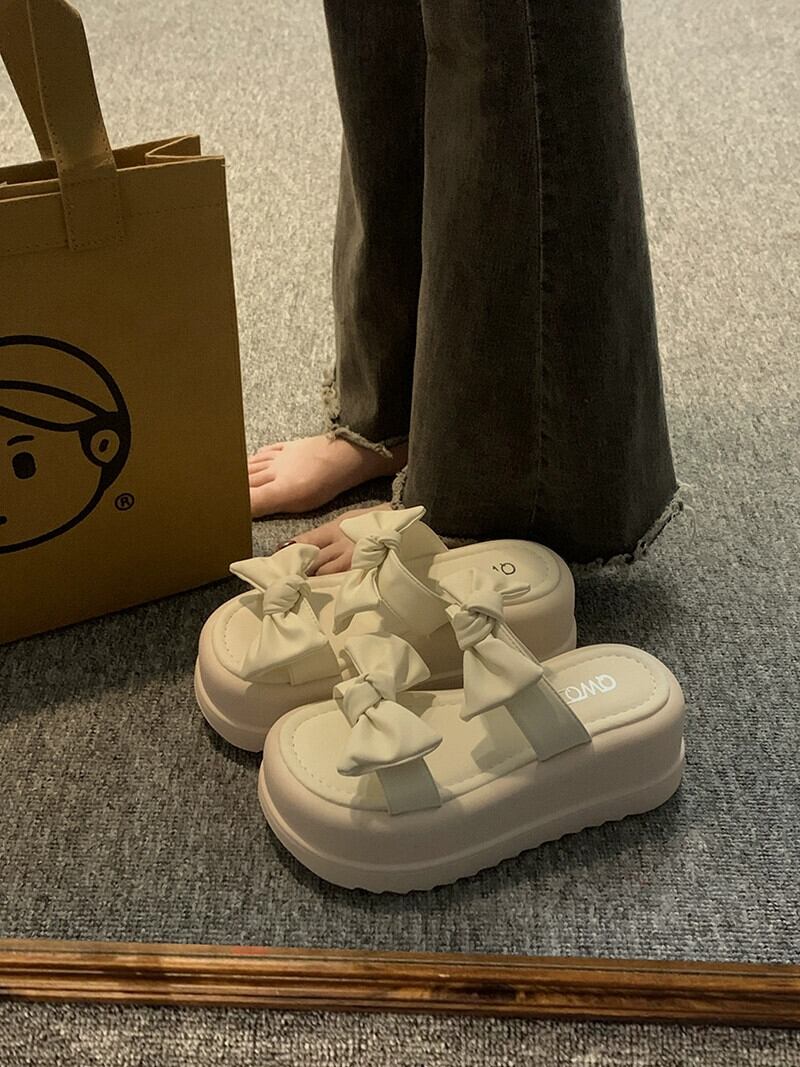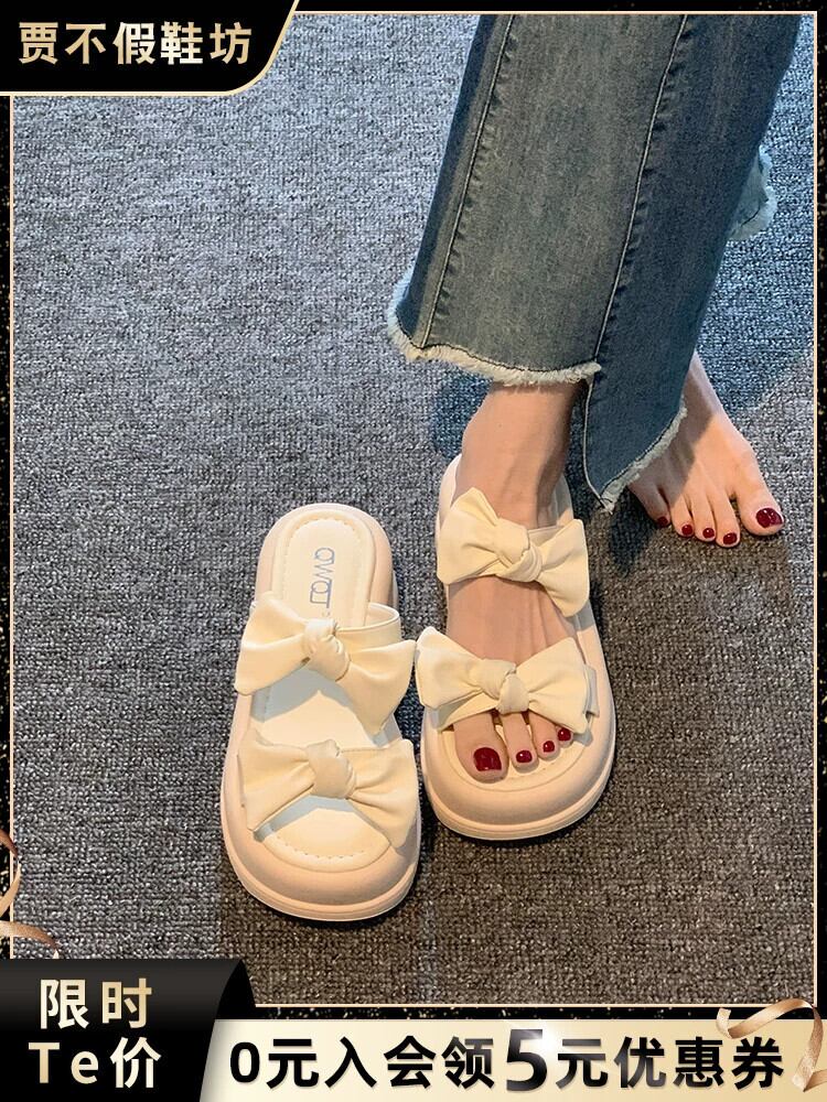 Jiabu 偽一言スリッパレディース 2023 年夏お出かけ新スタイル eign スタイルちょう結びマフィン厚底サンダルとスリッパ リボン ミュール 靴 シューズ サマー 夏物 jxjxf10122480296