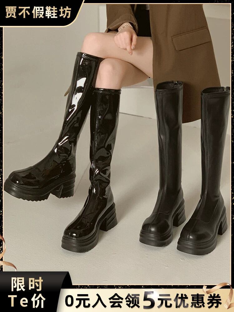 でも、ニーブーツ レディース 2023 夏の新作 スーパー オールマッチ ハンサム レトロ 薄い ファッション 太いヒール 薄いブーツ 靴 シューズ サマー 夏物 jxjxf87925947351