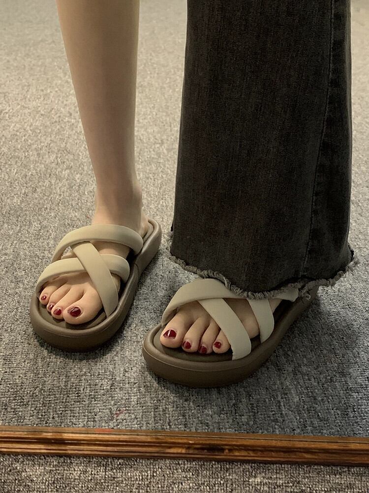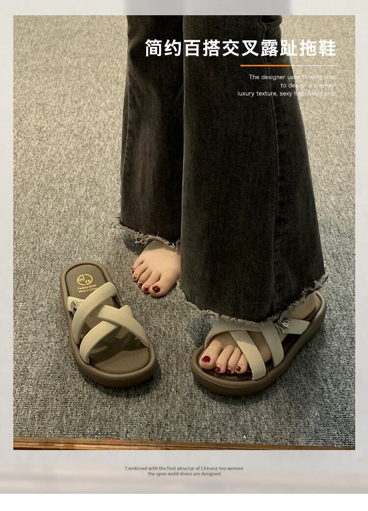 Jiabu 偽スリッパ女性のアウターウェア 2023 夏の新ファッションオールマッチ eign スタイル織り厚底 comtable ビーチサンダル ミュール 靴 シューズ サマー 夏物 jxjxf49999444429