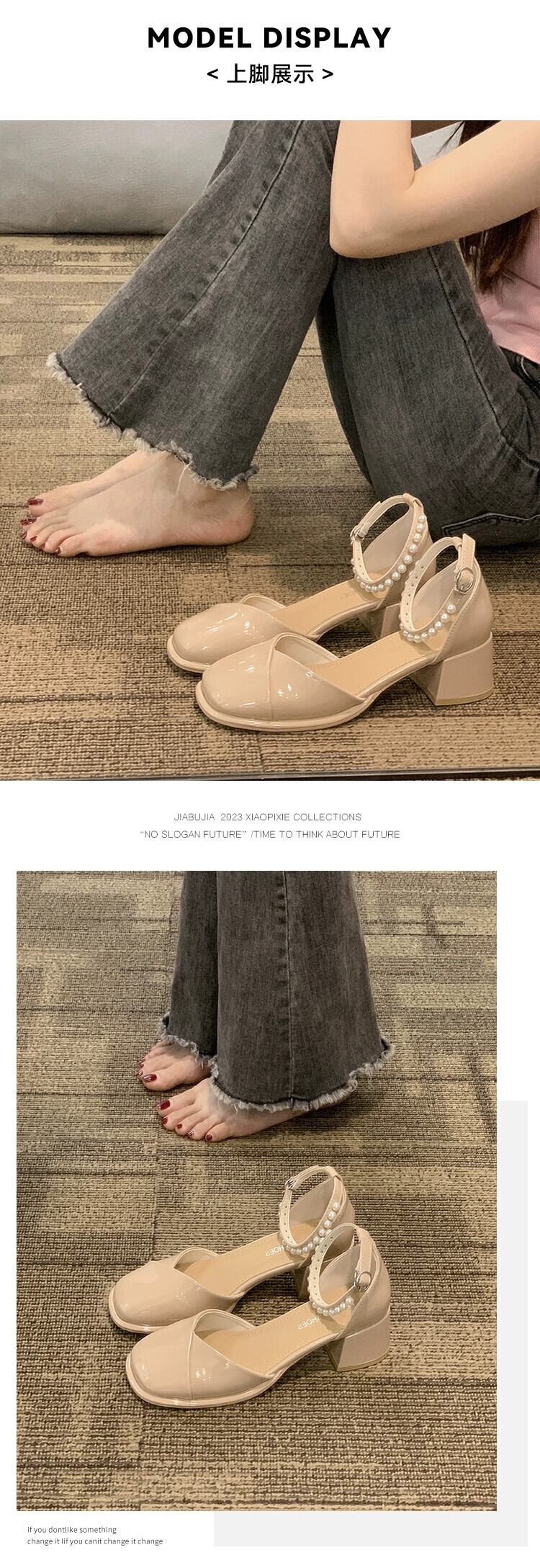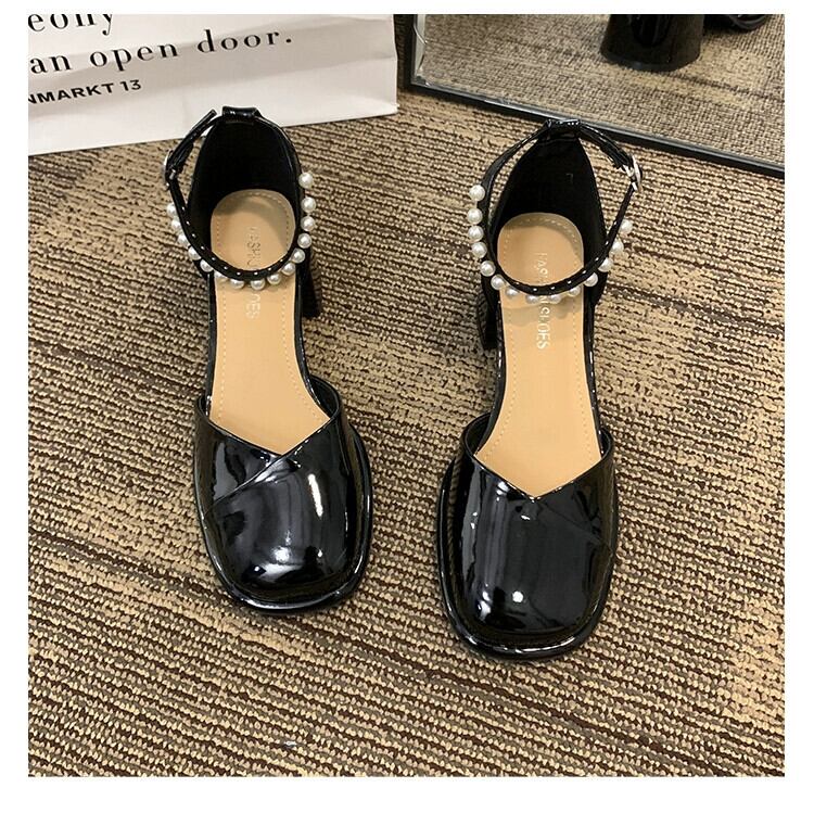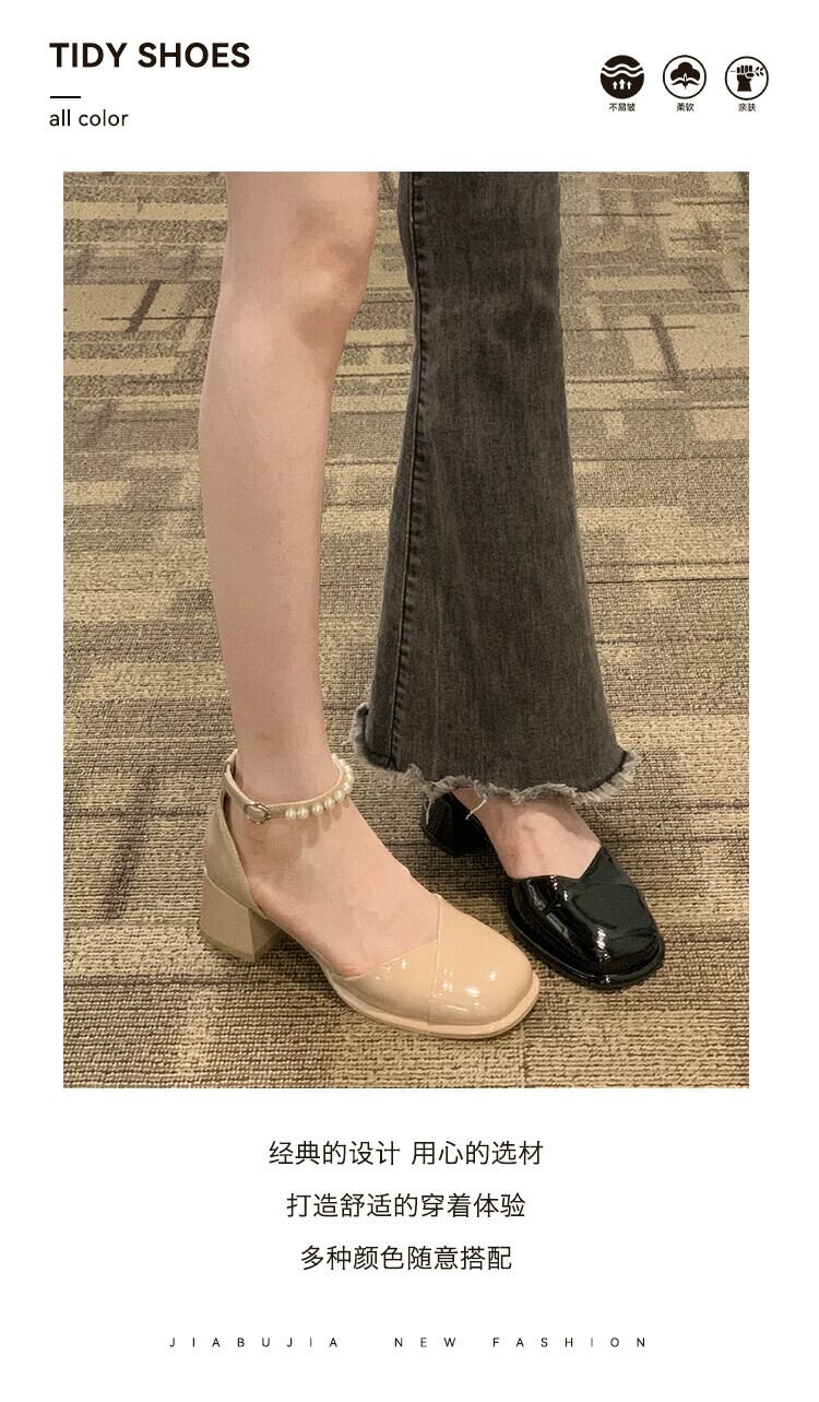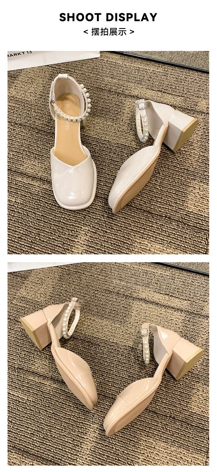 2023年夏の新作レディースシングルシューズフレンチパールアインスタイルレトロオールマッチコンタブルチャンキーヒールメリージェーンハイヒール 靴 サマー 夏物 真珠 jxjxf66983308990