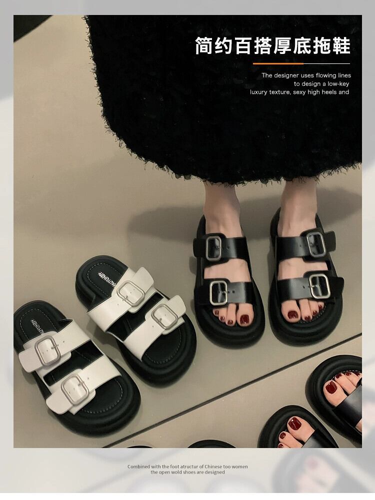 アウタースリッパレディース 2023 夏の新ファッションフレンチベルトバックル eign スタイル厚底カジュアルサンダルとスリッパトレンド ミュール 靴 シューズ サマー 夏物 ハーネス jxjxf4641286640