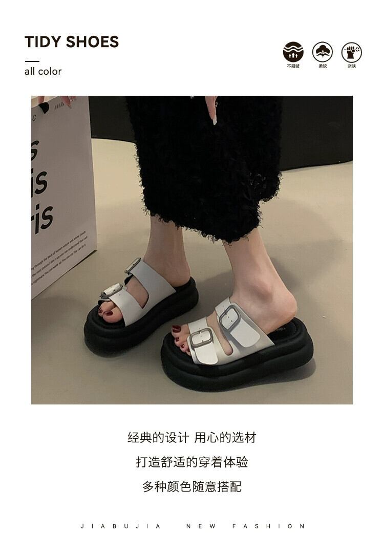Jiabjia 一言スリッパレディースアウター 2023 夏の新シンプルなレトロベルトバックル厚底サンダルとスリッパ ミュール 靴 シューズ サマー 夏物 ハーネス jxjxf36189789869