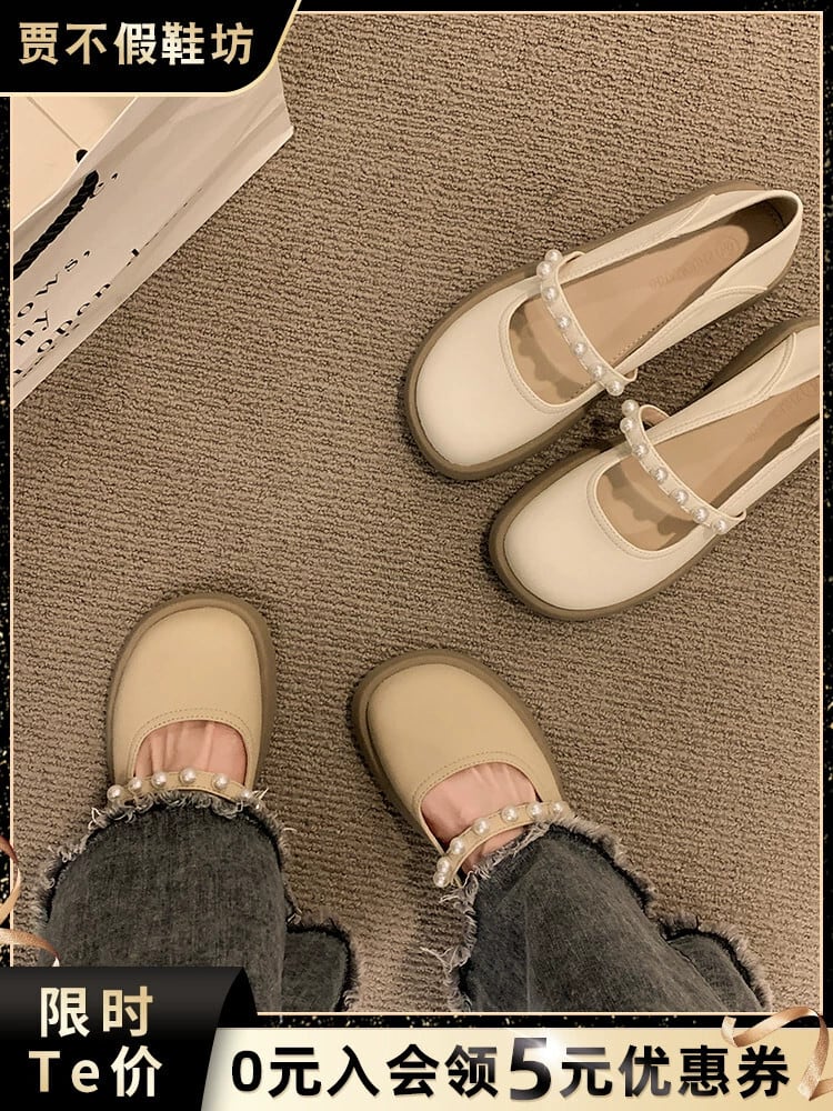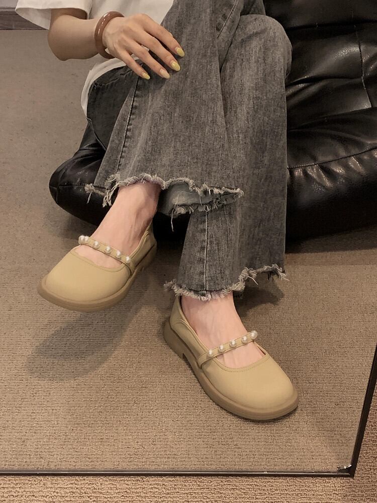 Jiabu 偽スタイルシングルシューズの女性の 2023 夏の新しい優しいレトロなオールマッチ eign スタイルのパールフラットレザーシューズ 靴 サマー 夏物 真珠 jxjxf53972717200
