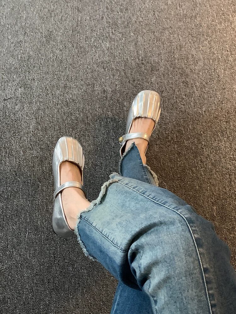 Jiabu 偽メリージェーンシューズ女性の 2023 夏の新ファッションオールマッチレトロ eign スタイルフラット comtable 小さな革靴 サマー 夏物 レザー jxjxf255323995