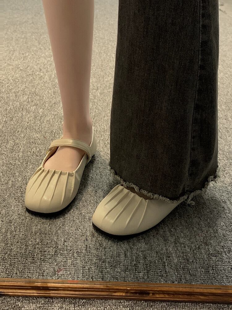 Jiabu 偽シングルシューズ女性の 2023 夏の新スーパーファッションオールマッチ優しいレトロフラット comtable 小さな革靴 サマー 夏物 レザー jxjxf99060448093