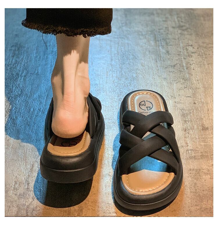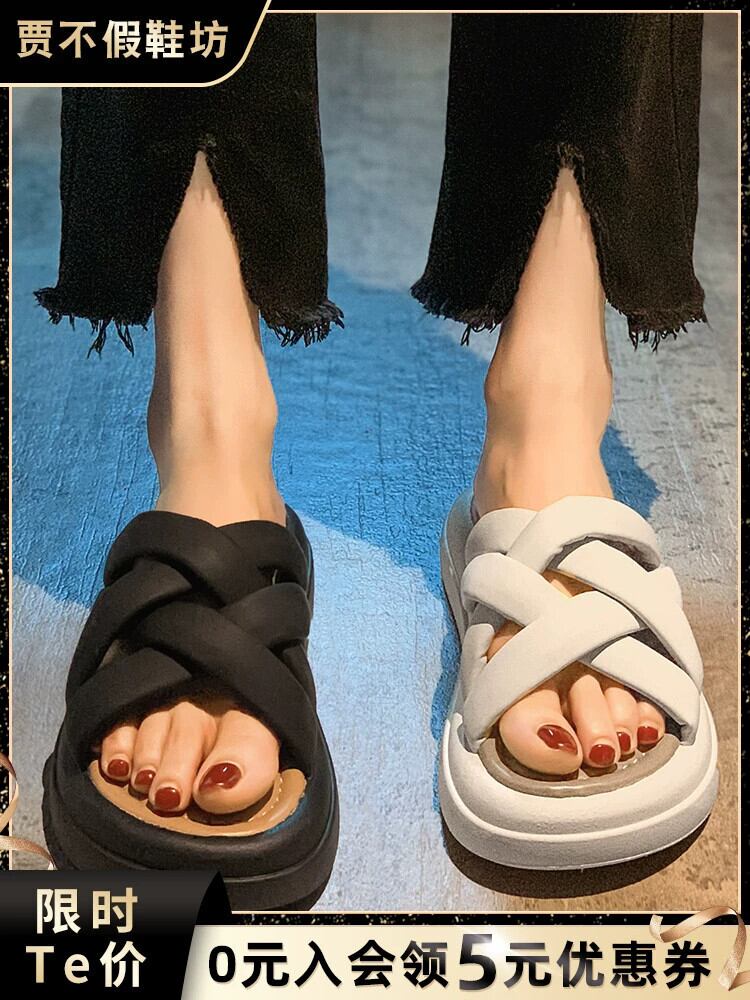 Jiabu 偽上着スリッパ女性の 2023 夏の新ファッション eign スタイル織り厚底 comtable ビーチサンダルとスリッパ ミュール 靴 シューズ サマー 夏物 jxjxf86462476805