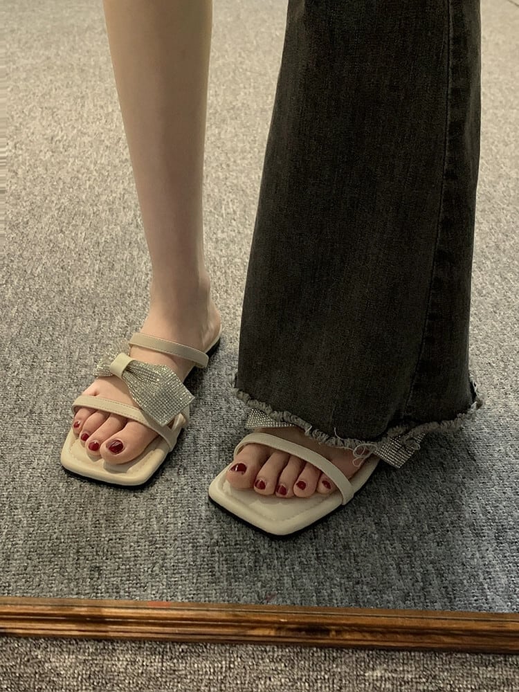 スカートスリッパ付き女性 2023 夏の新ファッションオールマッチ eign スタイルラインストーン平底妖精風サンダルとスリッパトレンド ミュール 靴 シューズ サマー 夏物 jxjxf91197006822