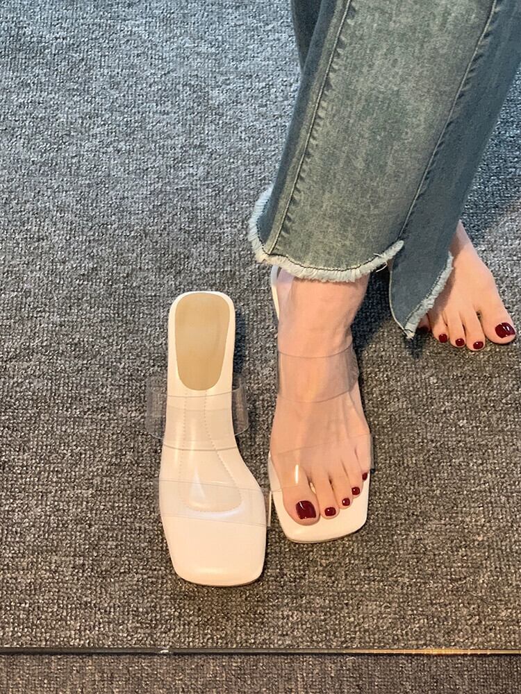 Jiabu 偽オンライン有名人スリッパ女性のアウターウェア 2023 夏の新スーパーファッション透明単語ハイヒールサンダルとスリッパ 靴 シューズ ミュール サマー 夏物 jxjxf19116120499