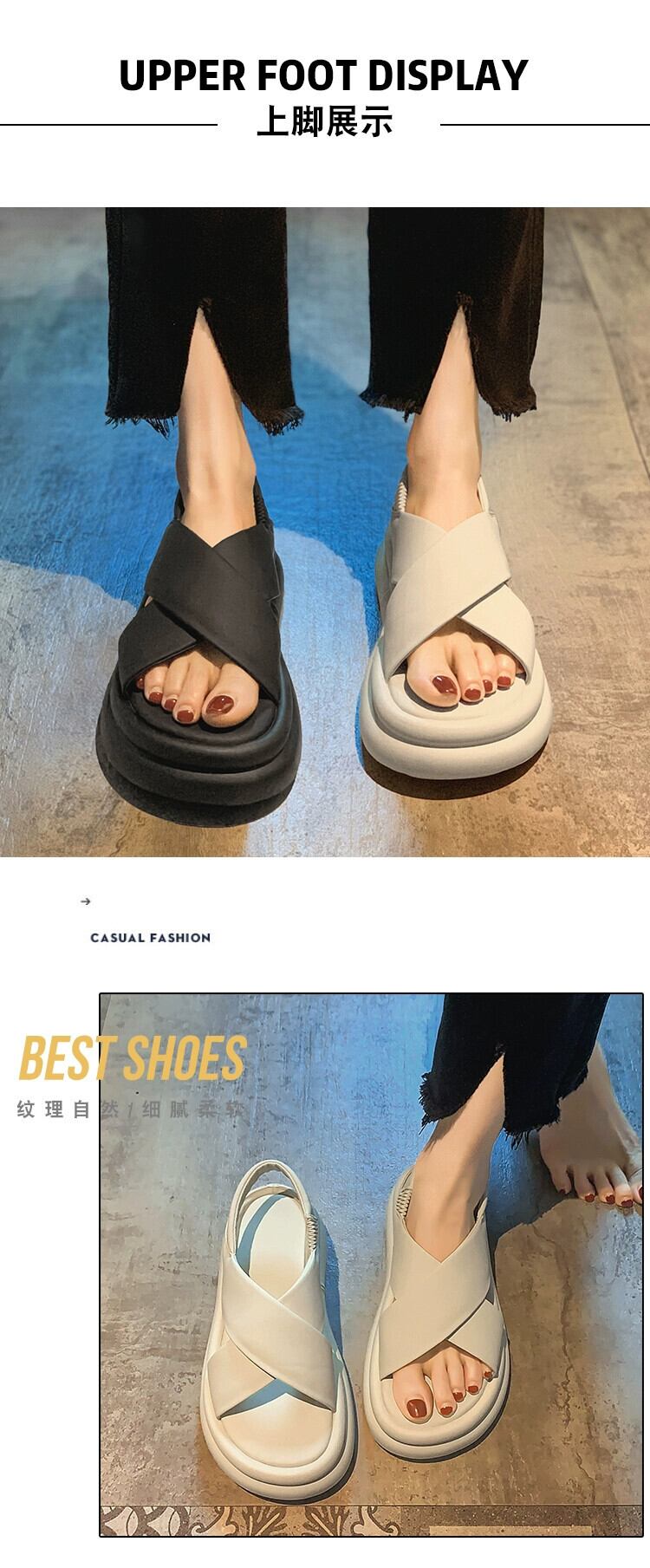 Jiabu 偽サンダル女性の 2023 夏の新ファッションシンプルな eign スタイル comtable 学生厚底カジュアルビーチシューズ 靴 サマー 夏物 jxjxf20473022299