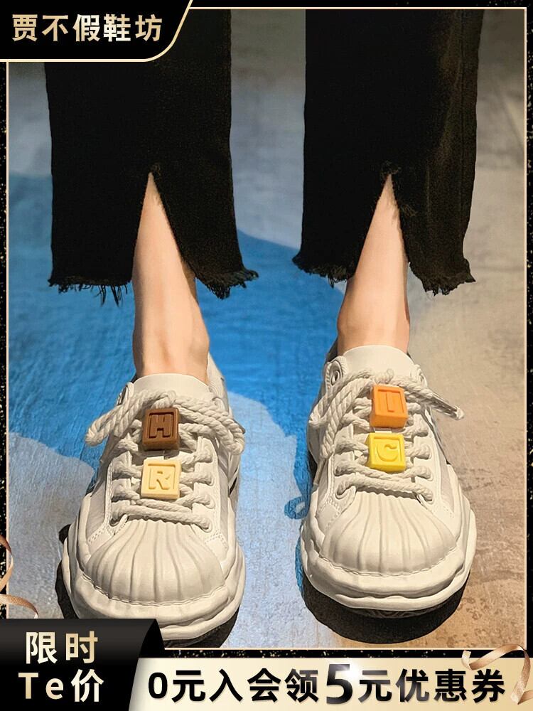 Jiabu 偽ネットレッドシェルヘッド小さな白い靴の女性の 2023 夏の新 eign スタイルのファッション厚底スポーツカジュアルシューズ ホワイト サマー 夏物 jxjxf85746611824