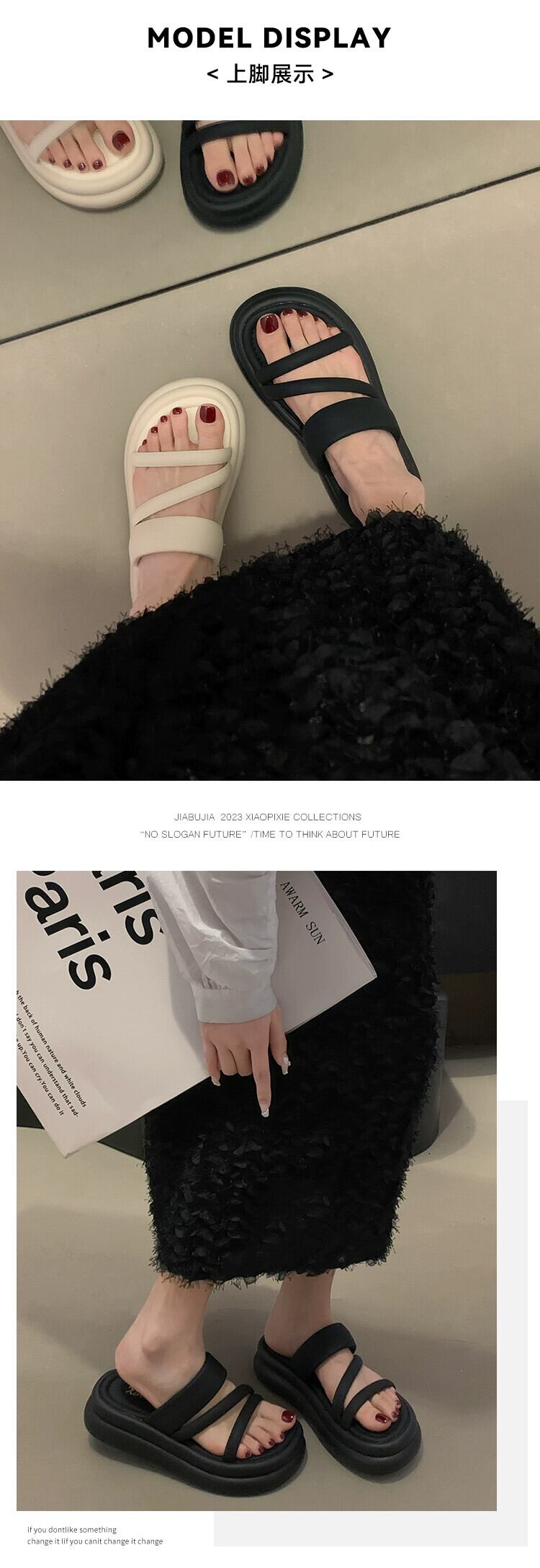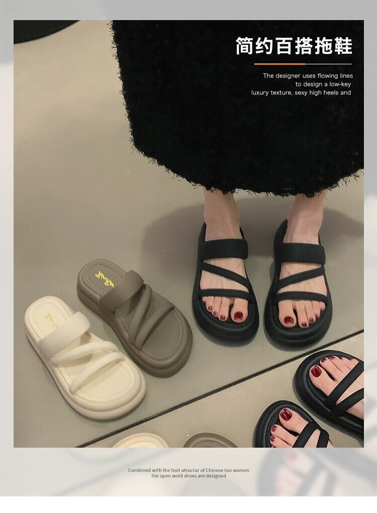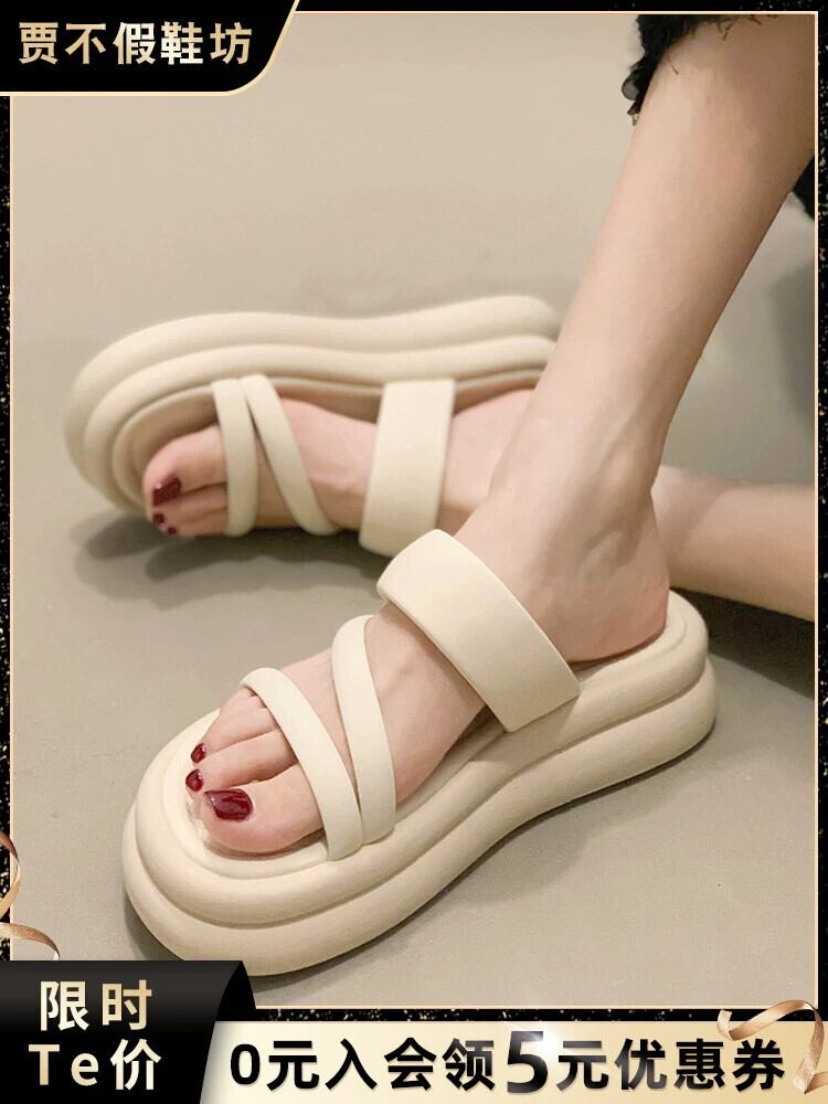 Jiabu 偽一言スリッパ女性は 2023 年の夏に出かける新しいシンプルなフレンチレトロマフィン厚底サンダルとスリッパ ミュール 靴 シューズ サマー 夏物 jxjxf9707619861