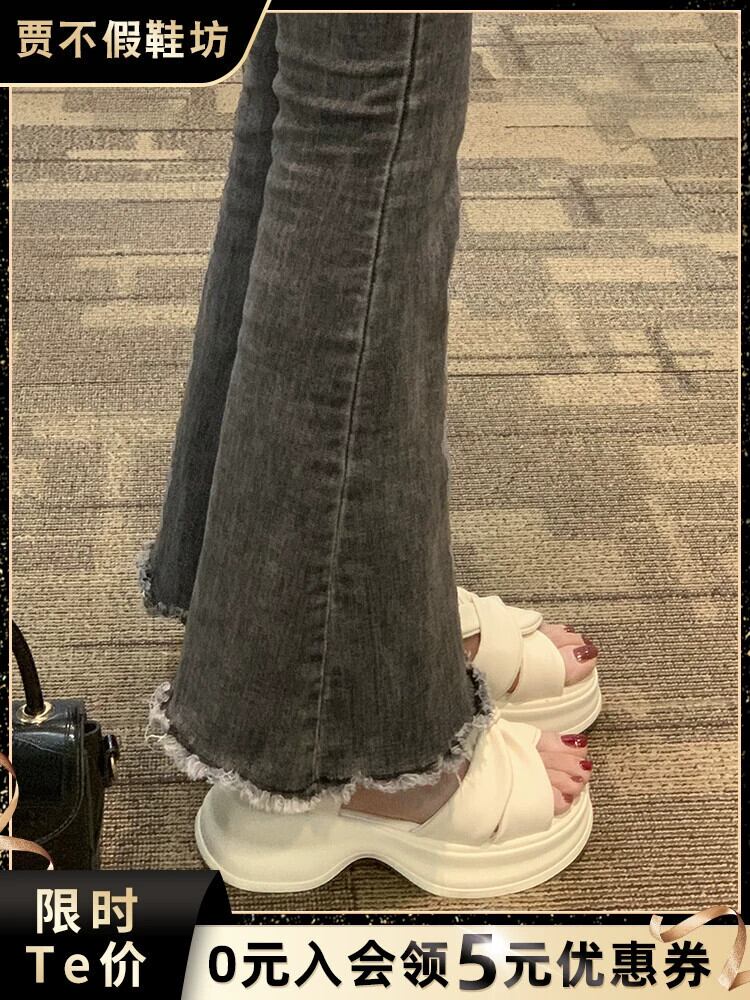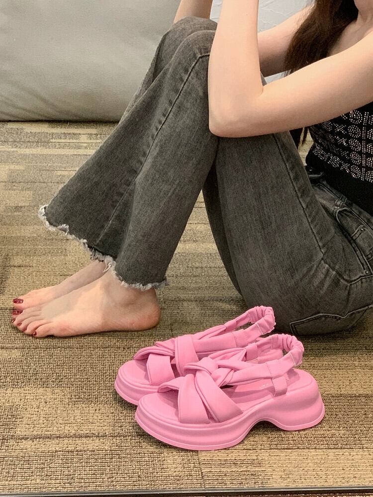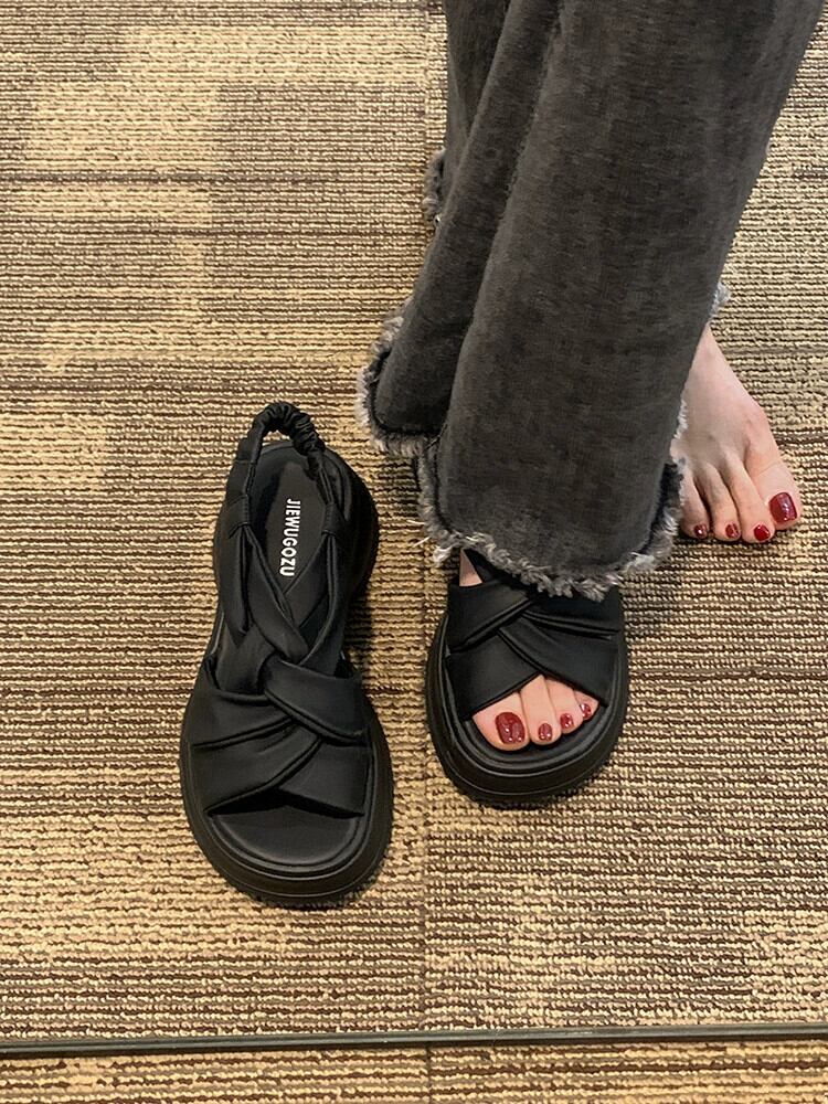 Jiabu 偽サンダルの女性の 2023 夏の新ファッションフレンチシンプルなレトロ高められた厚底カジュアルビーチシューズ 靴 サマー 夏物 jxjxf79718611794