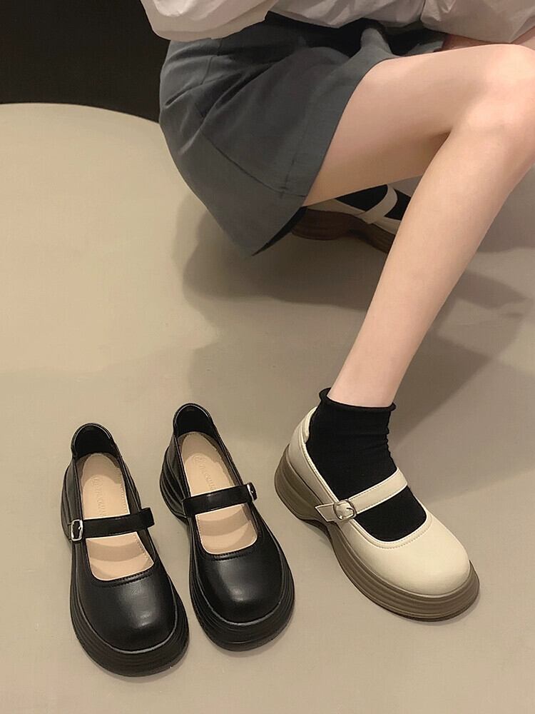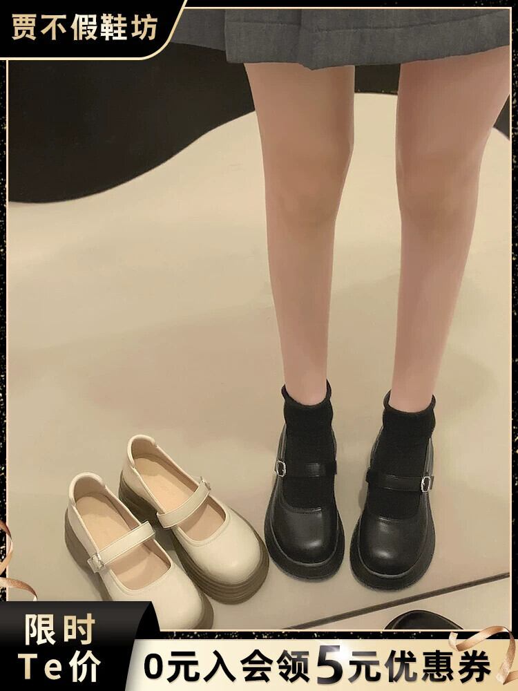 Jiabu フェイクスモールレザーシューズの女性の 2023 夏の新 ese オールマッチ小さな厚いヒール eign スタイルメリージェーン靴トレンド サマー 夏物 jxjxf41755707952