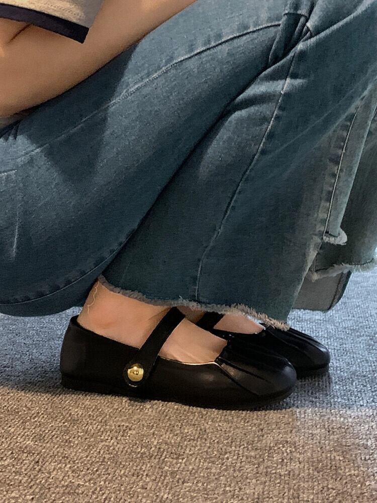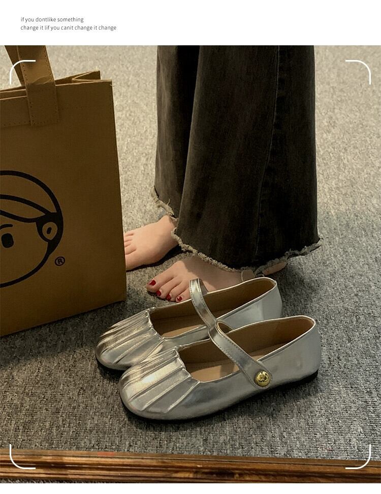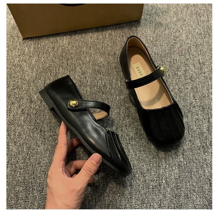 Jiabu 偽シングルシューズ女性の 2023 夏の新ファッションオールマッチ優しいレトロフラット comtable 小さな革靴 サマー 夏物 レザー jxjxf55720633734