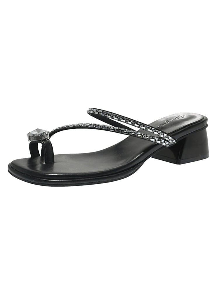 厚いヒールセットトゥスリッパ女性の 2023 年の夏に出かける新しいフランスのラインストーンの気質妖精ファッションサンダルとスリッパ ミュール 靴 シューズ サマー 夏物 jxjxf54902994571