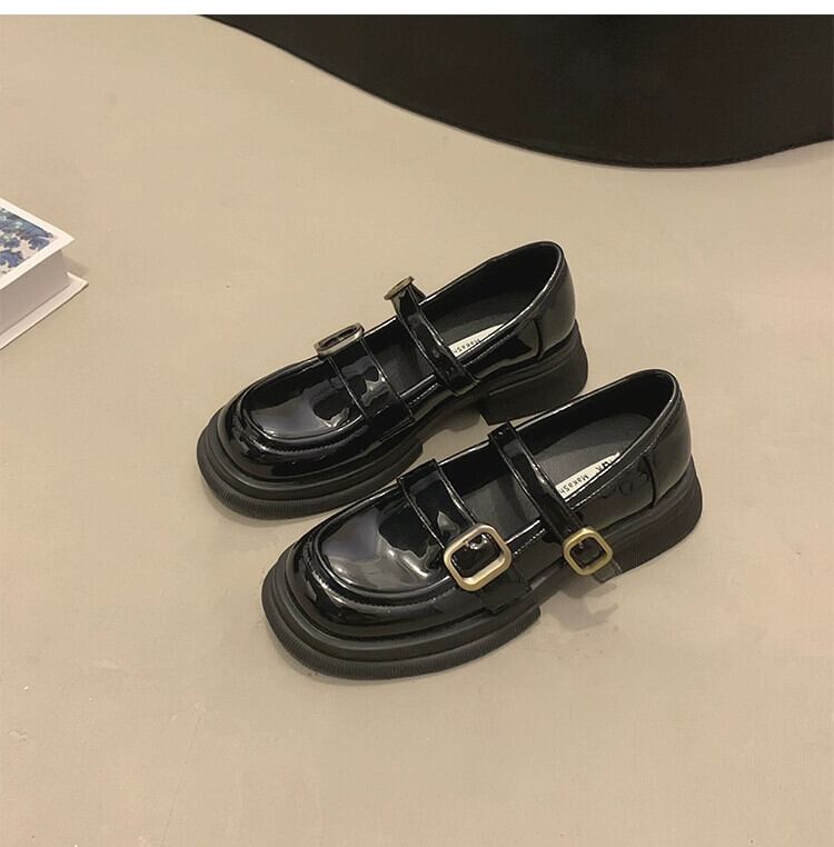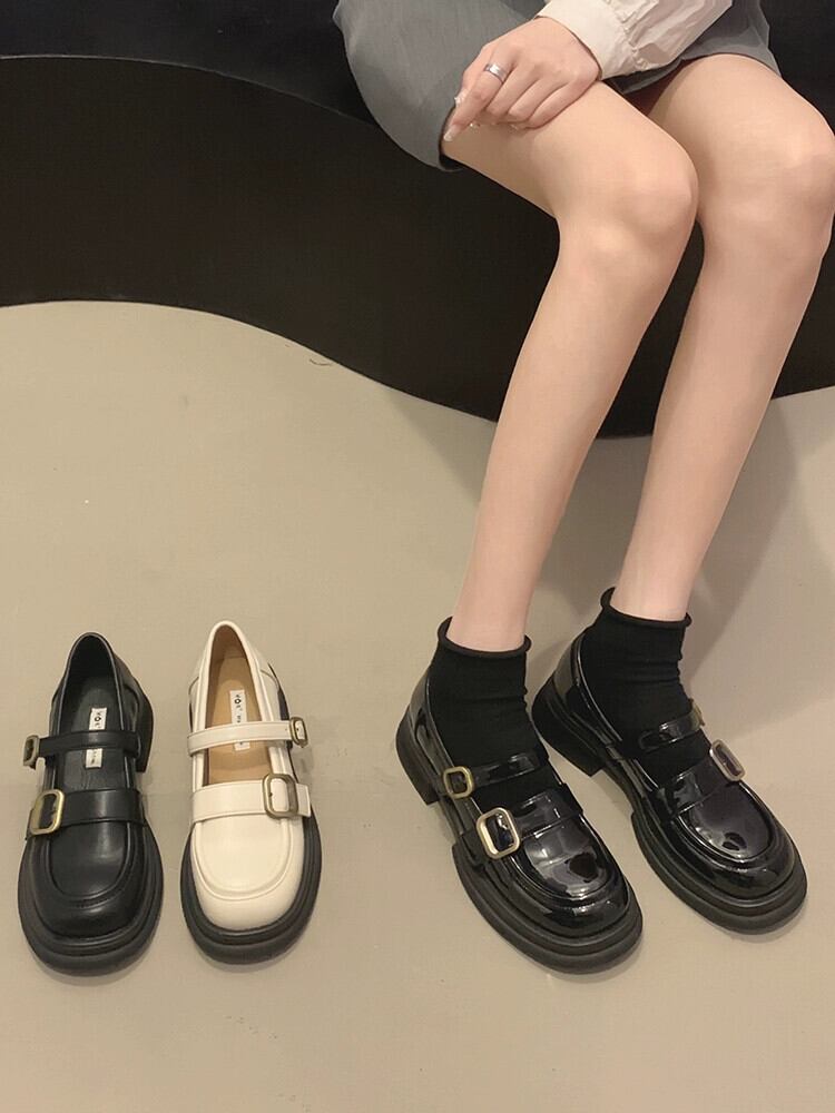 Jiabu 偽メリージェーンの靴の女性の 2023 夏の新レトロベルトバックル中口厚いヒール ese 小さな革の靴潮 シューズ サマー 夏物 レザー ハーネス jxjxf11697046254