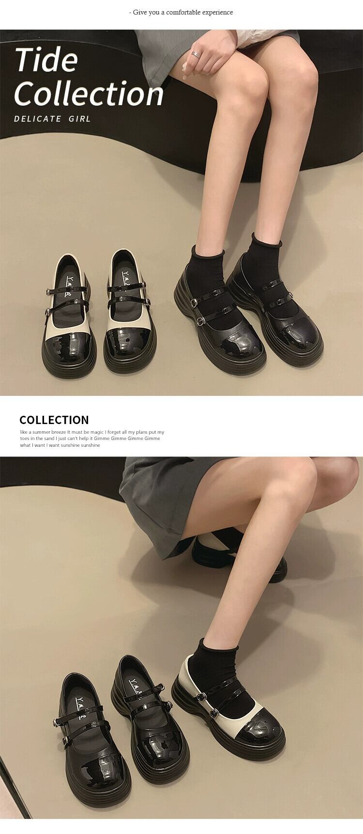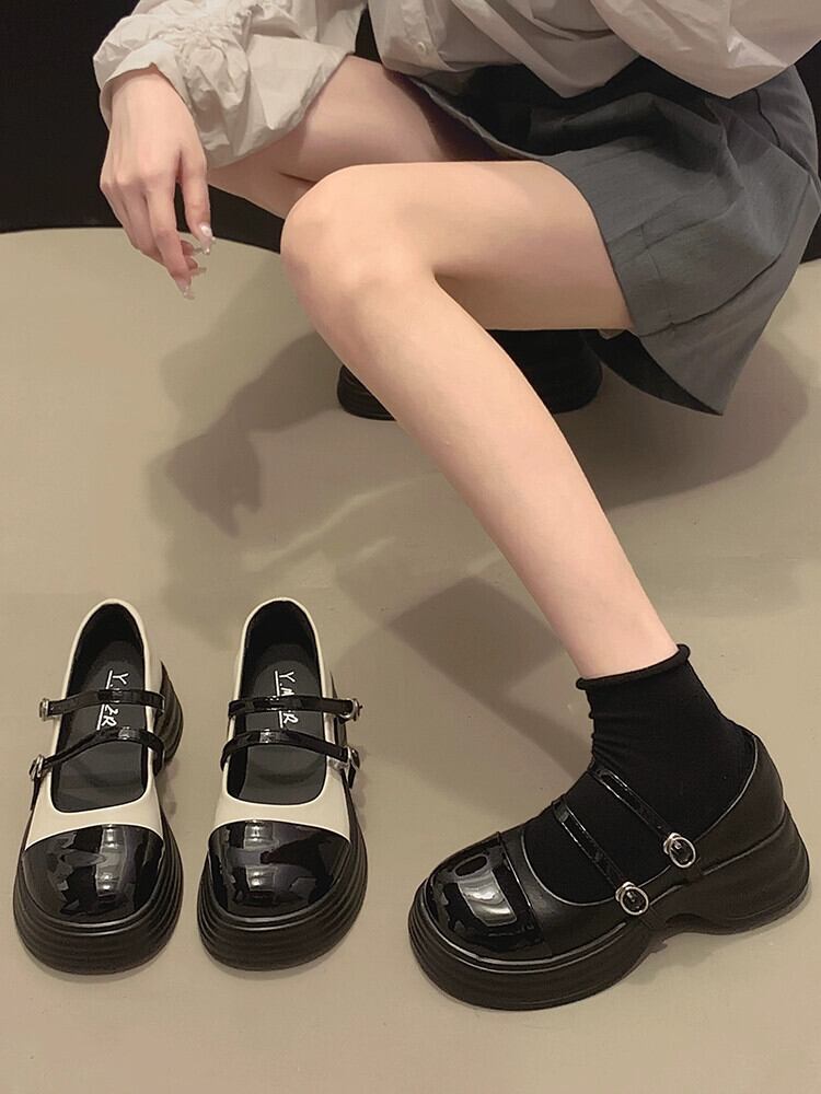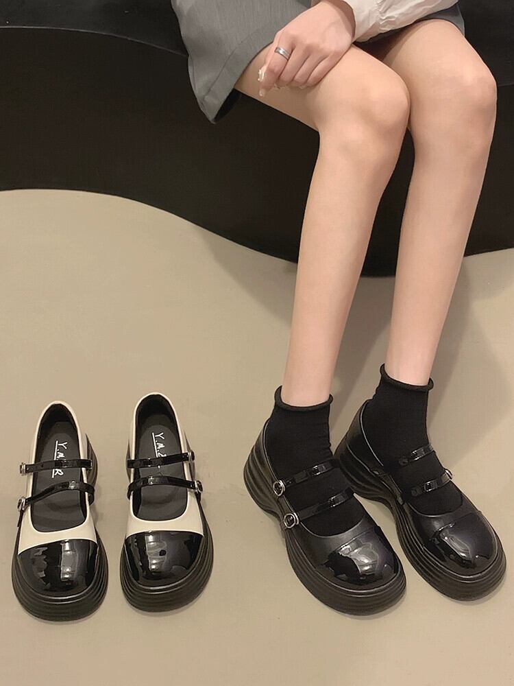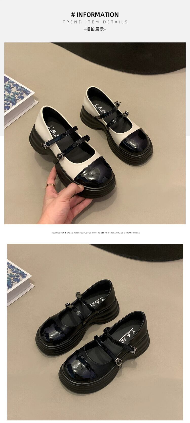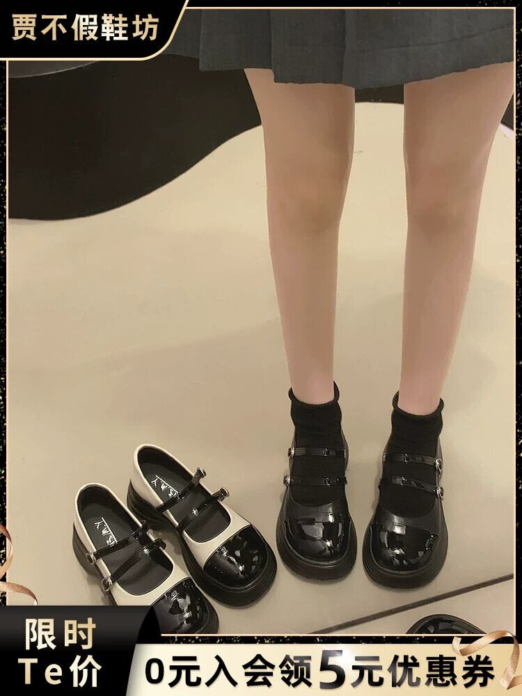 Jiabu 偽メリージェーンシューズ女性の 2023 夏の新スーパーレトロ eign スタイル厚底ラウンドトゥ小さな革靴 サマー 夏物 ラウンドトー レザー jxjxf95369066758