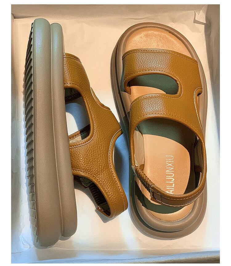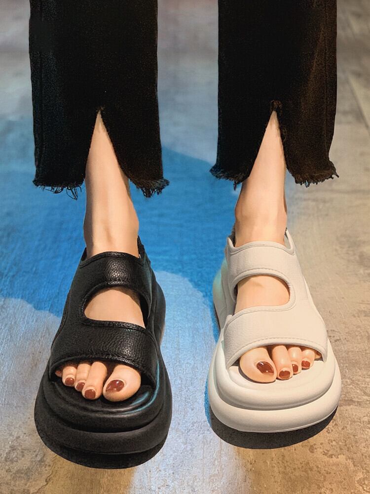 Jiabu 偽厚底サンダル女性の 2023 夏の新フレンチスタイルのシンプルなレトロな comtable カジュアルビーチシューズ潮 靴 サマー 夏物 jxjxf88936922114