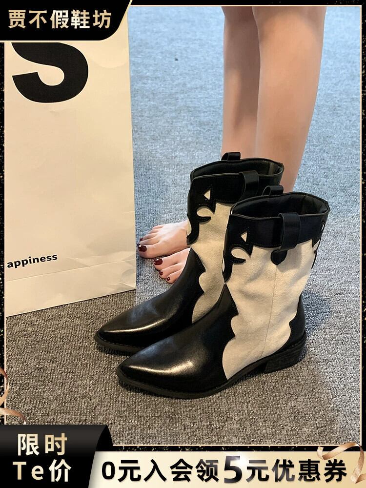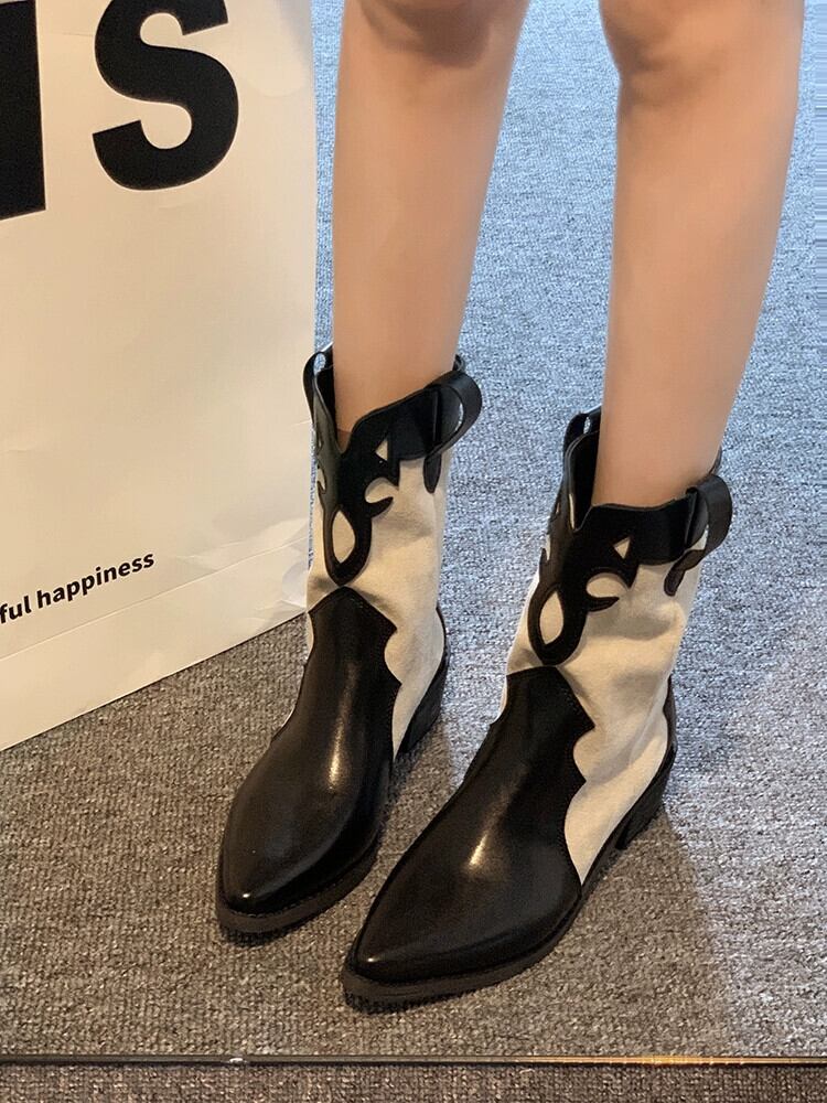 Jiabu 偽スーパーポインテッドショートブーツ 2023 夏の新フレンチスタイルレトロ eign スタイルチャンキーヒールファッションオートバイブーツ 靴 シューズ サマー 夏物 jxjxf7410617062