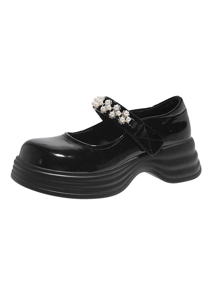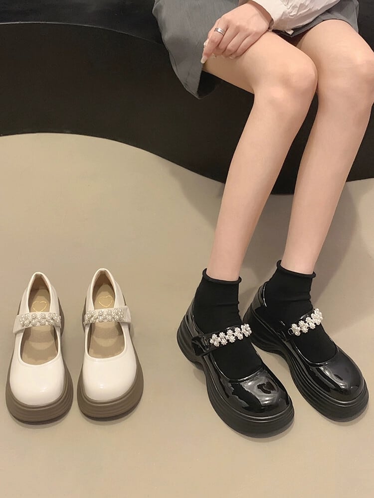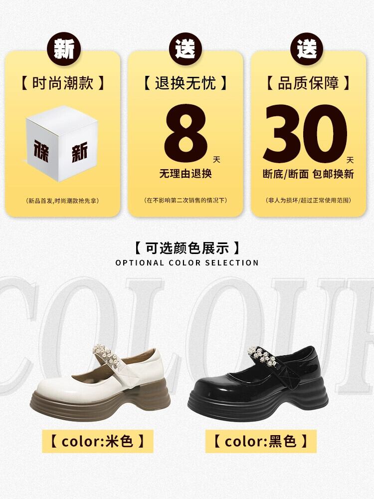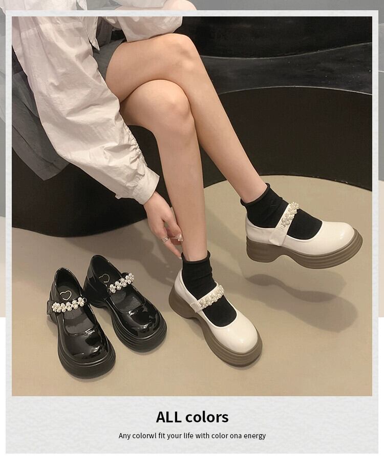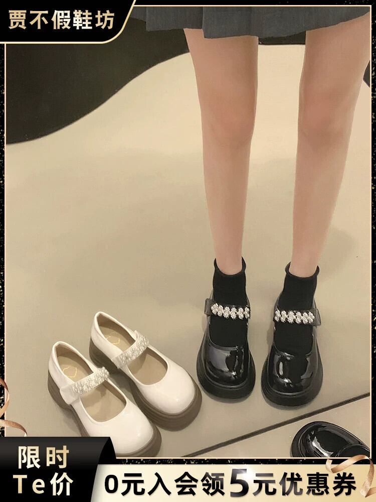 Jiabu 偽シングルシューズ女性の 2023 夏の新スーパーファッションレトロパール厚底メリージェーンシューズトレンド 靴 サマー 夏物 真珠 jxjxf63020517142