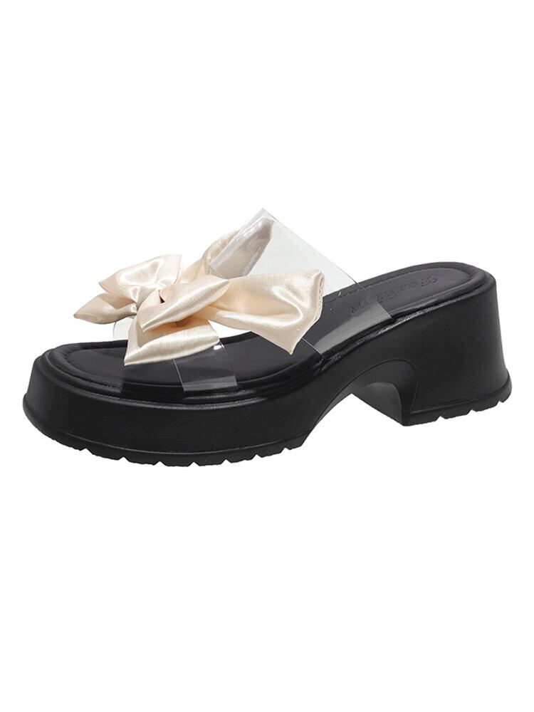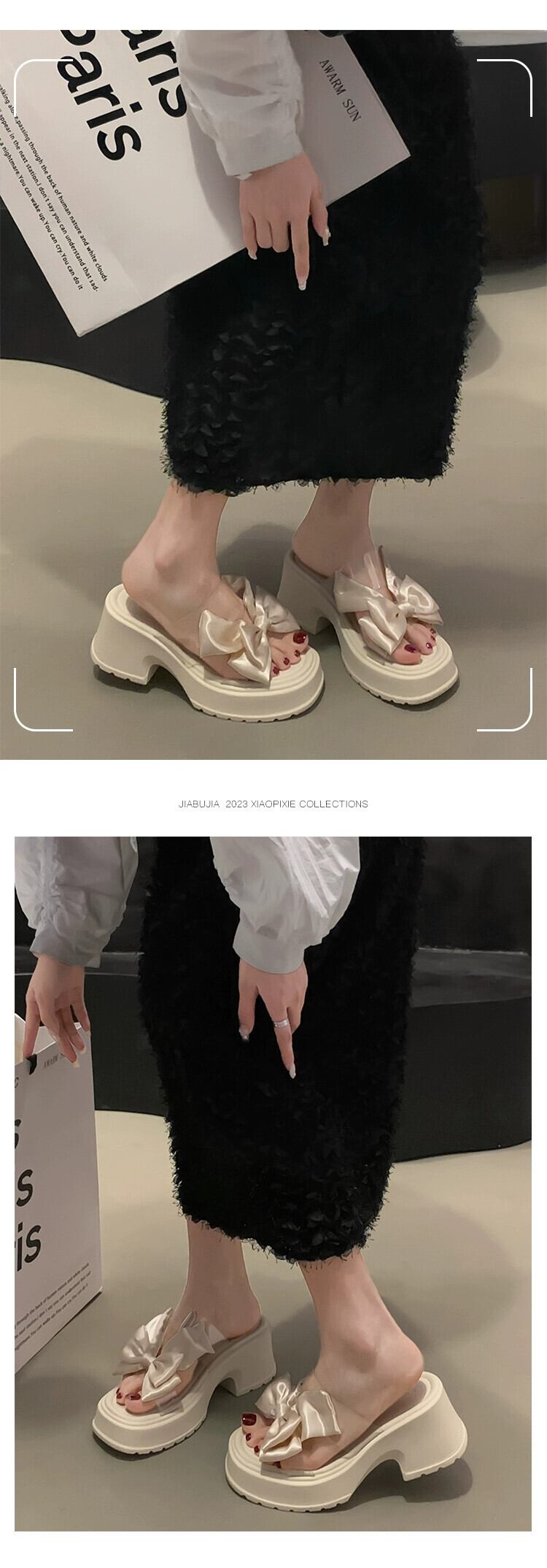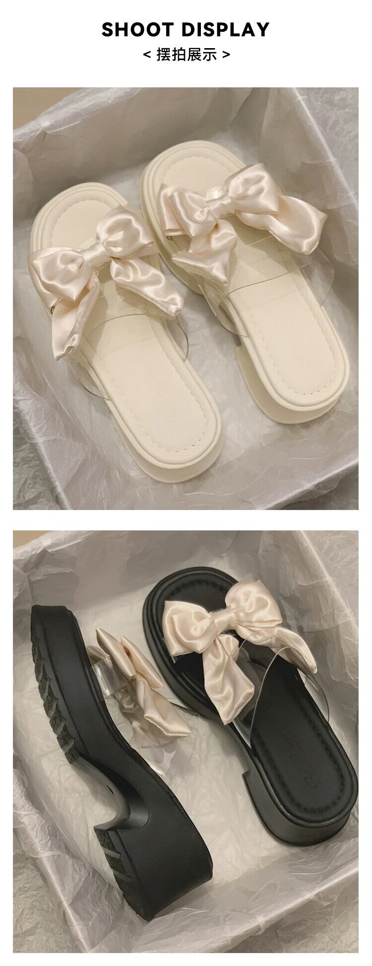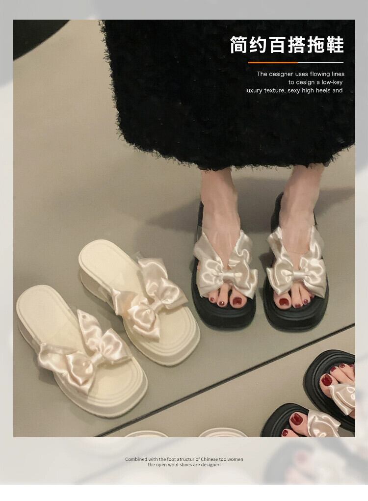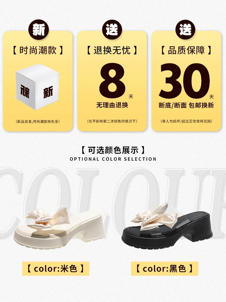 Jiabu 偽オンライン有名人スリッパ女性のアウターウェア 2023 夏の新ファッション eign スタイル弓厚いヒールスリッポントレンド リボン ミュール 靴 シューズ サマー 夏物 jxjxf61810283086