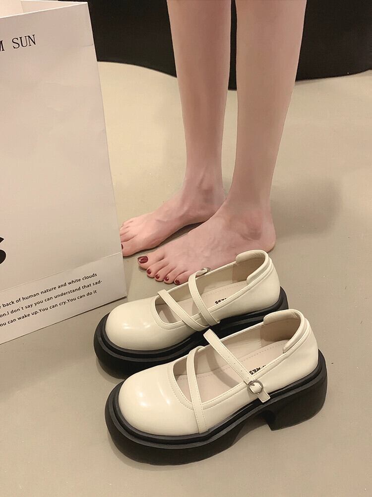 Jiabu 偽厚底シングルシューズレディース 2023 夏の新フランスのファッションレトロな eign スタイルメアリージェーン小さな革靴 サマー 夏物 レザー jxjxf76927943616