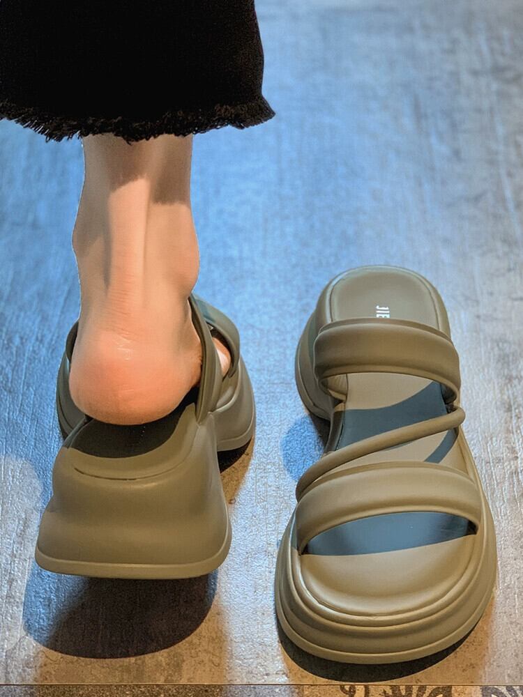 Jiabu 偽レディーススリッパアウターウェア 2023 夏の新オールマッチレトロ comtable カジュアル厚底サンダルとスリッパトレンド ミュール 靴 シューズ サマー 夏物 jxjxf18252132000