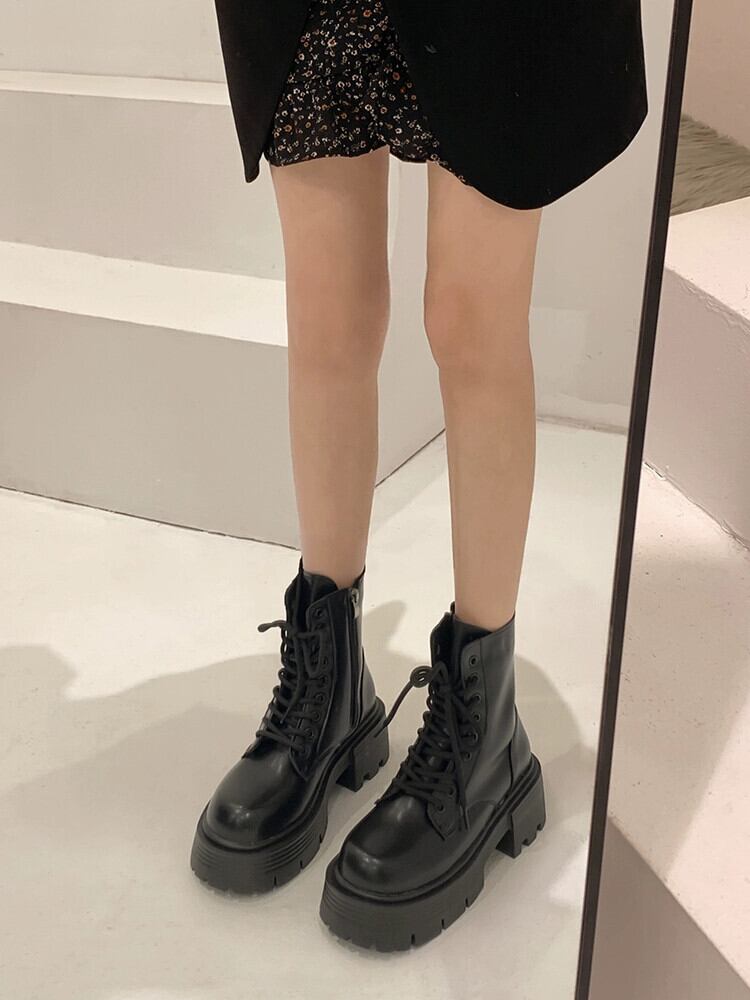 Jiabu フェイクショートブーツレディース 2023 夏の新ファッションオールマッチ英国スタイル太いヒールハンサムフライドストリートマーティンブーツトレンド 靴 シューズ サマー 夏物 jxjxf16222538742