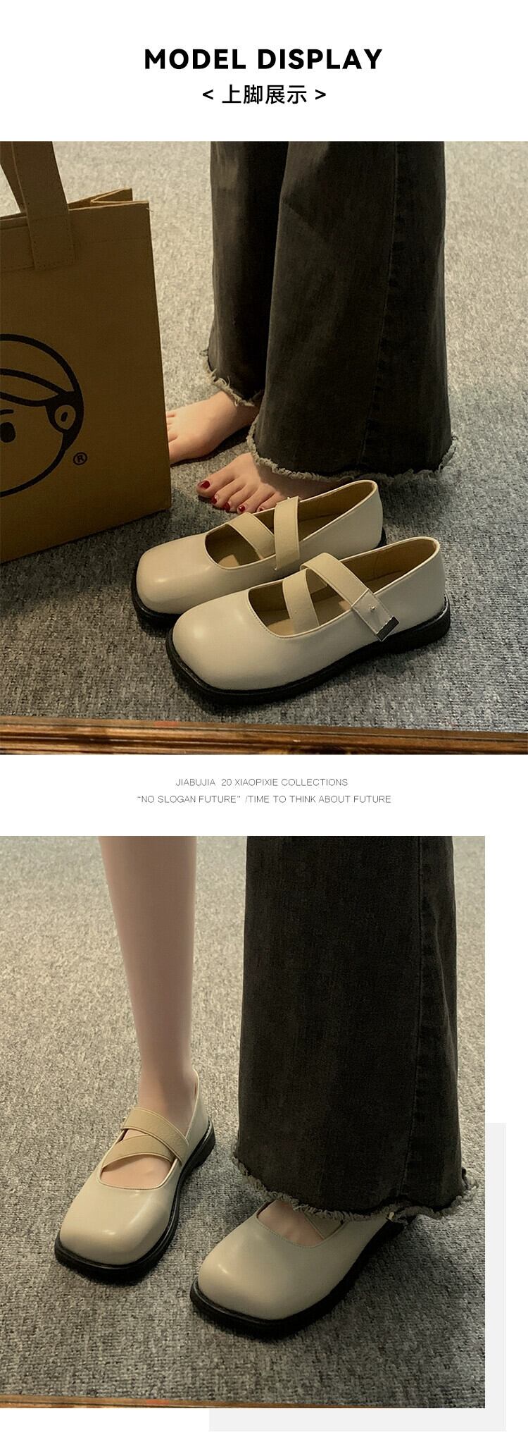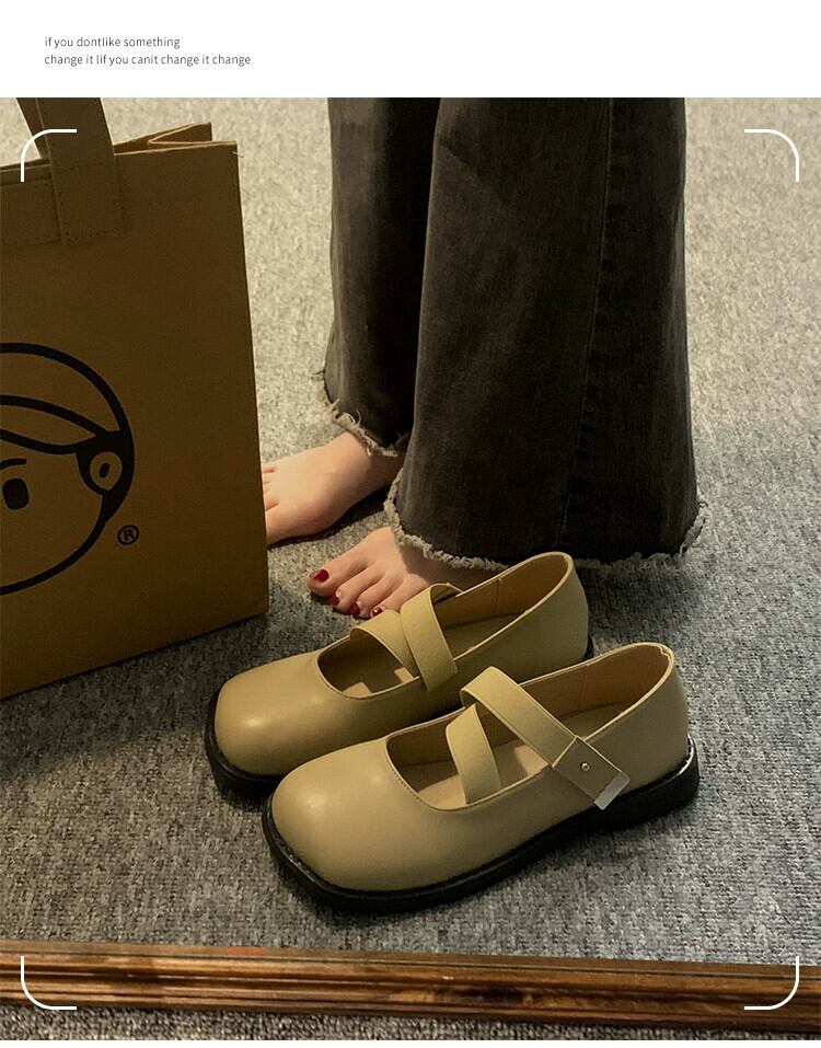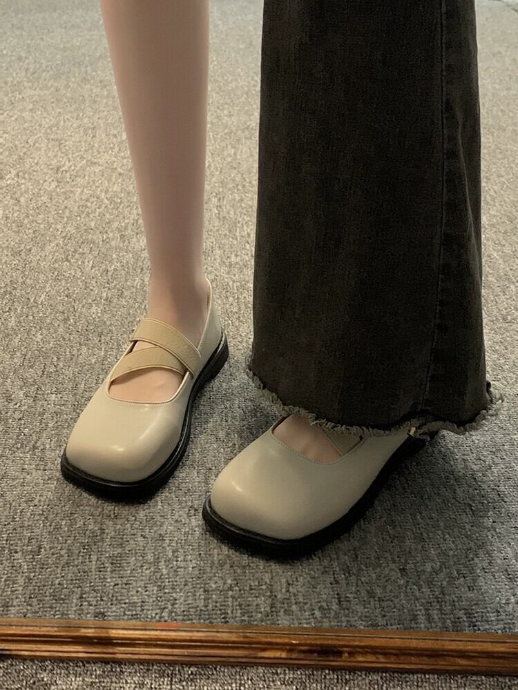 Jiabu 偽の女性のシングルシューズ 2023 夏の新ファッションオールマッチレトロなスタイルの平底スクエアトゥ小さな革靴トレンド サマー 夏物 レザー スクウェア jxjxf22566928806
