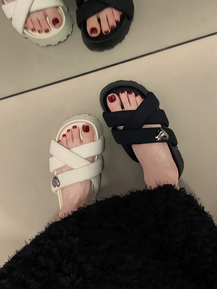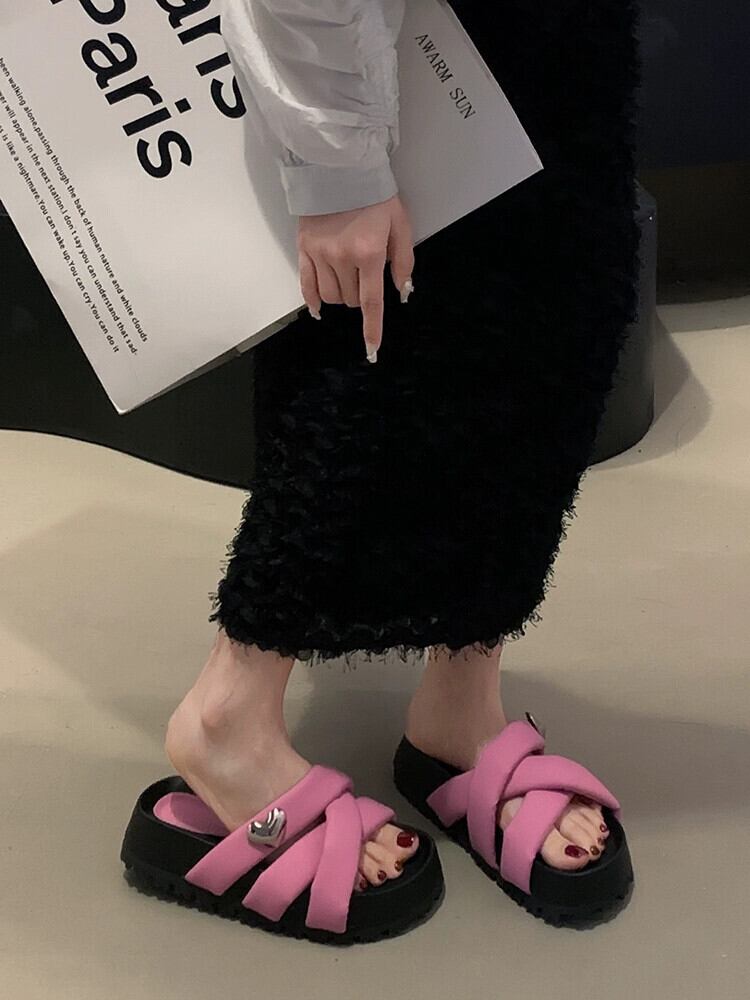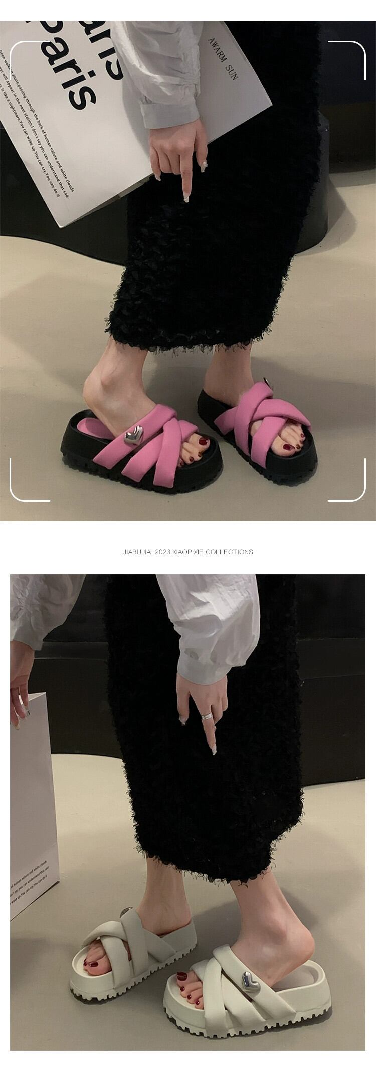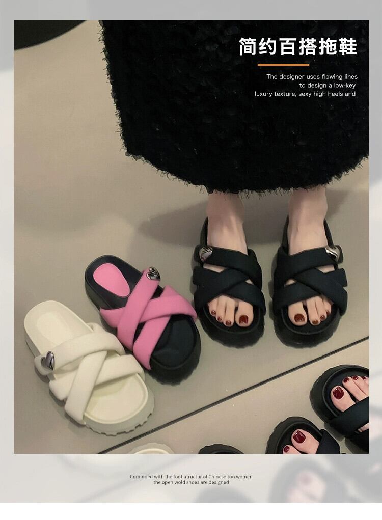 Jiabu 偽レディーススリッパアウターウェア 2023 年の夏の新しいファッション織物厚い底の快適な西洋スタイルのビーチサンダル ミュール 靴 シューズ サマー 夏物 jxjxf34521643231