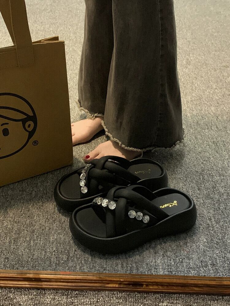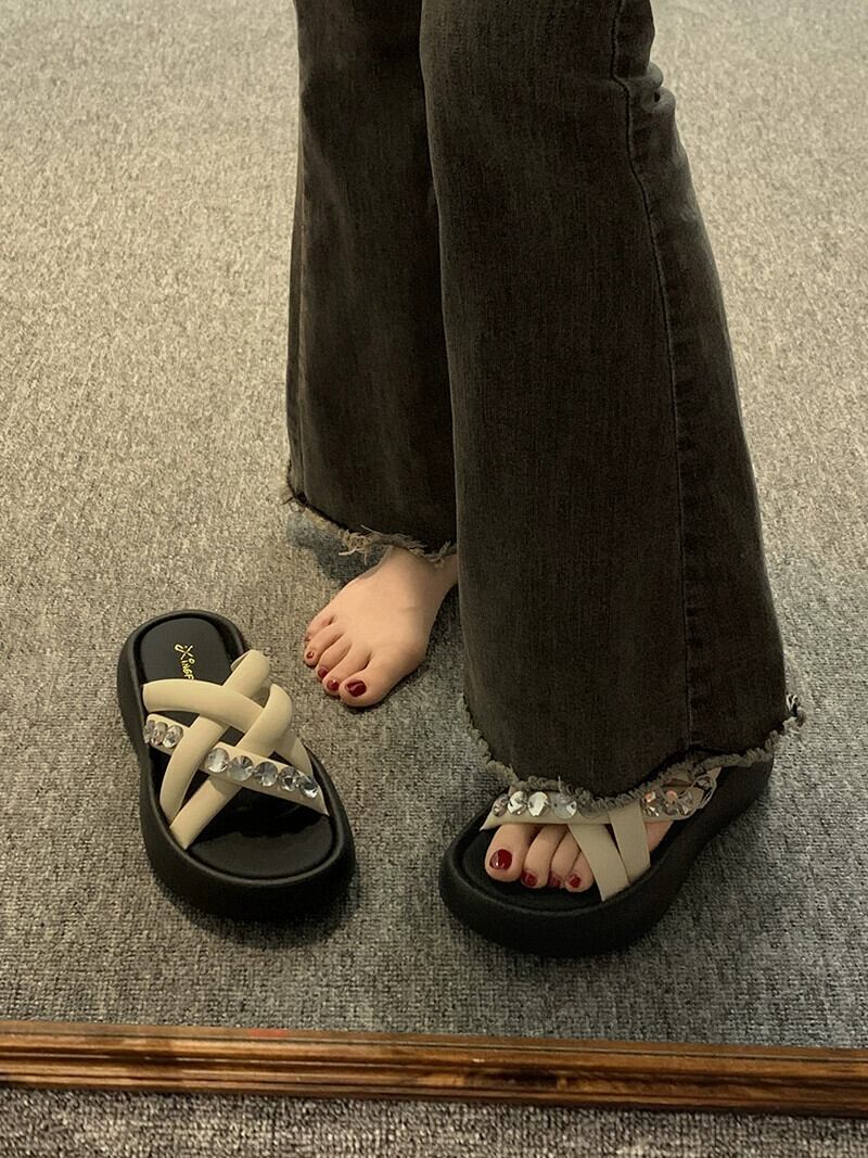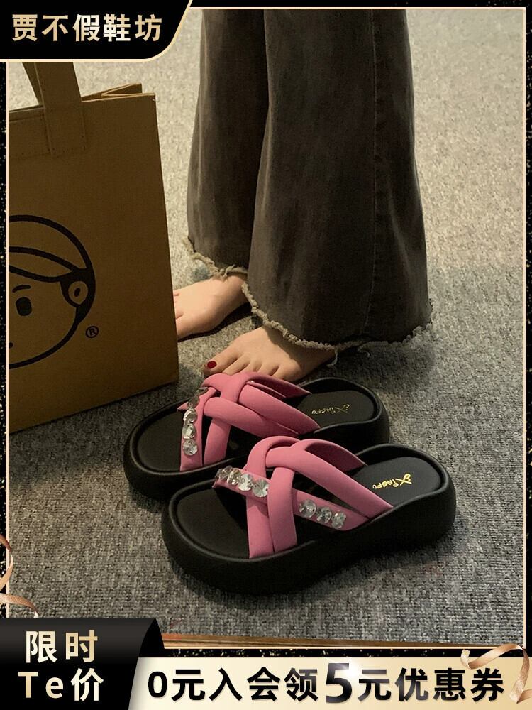 Jiabu 偽アウターウェア女性用スリッパ 2023 年夏の新しいネットレッドスーパー eign スタイルのラインストーン厚底コンタブル ビーチ サンダル ミュール 靴 シューズ サマー 夏物 jxjxf86201438471